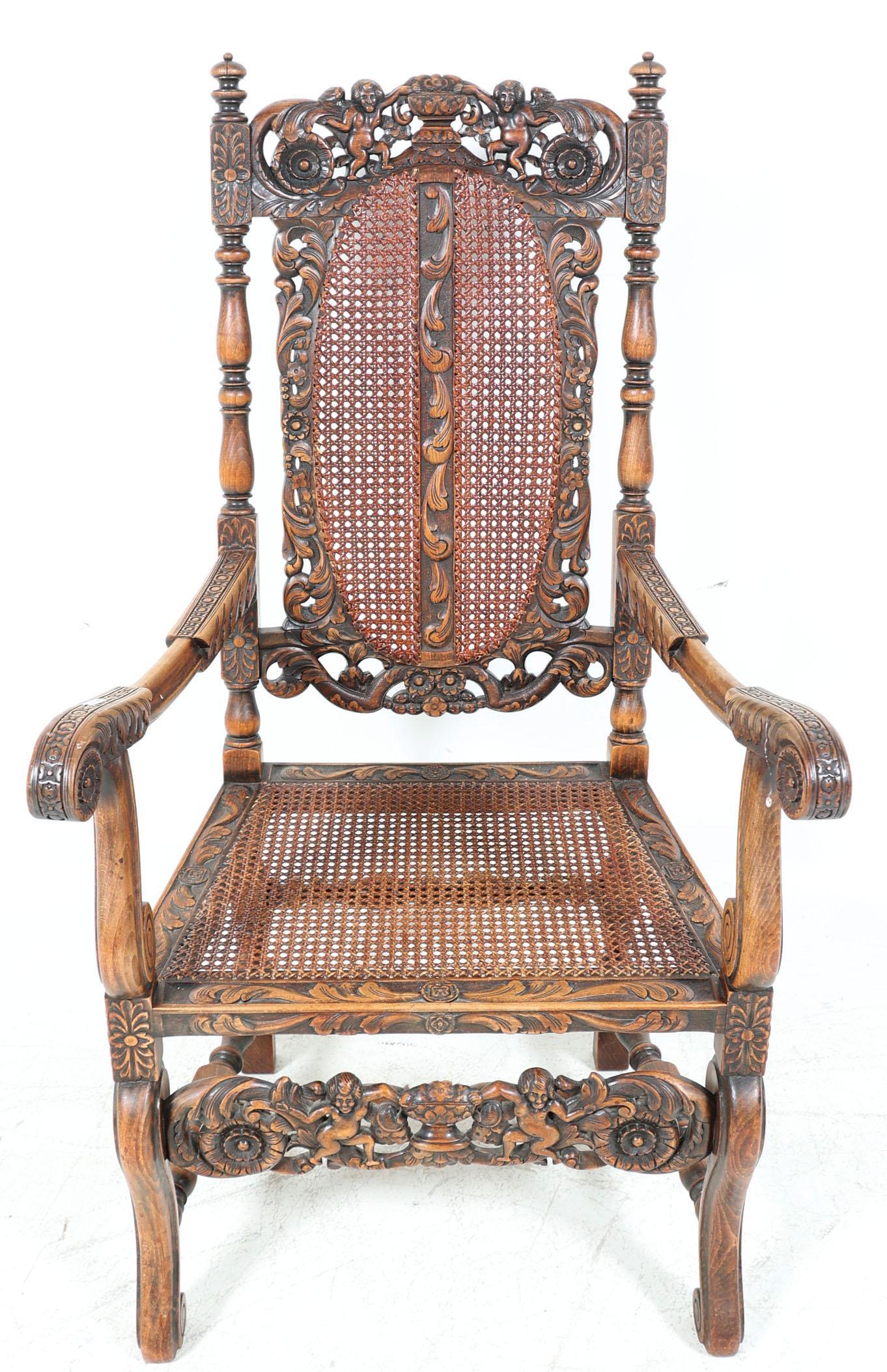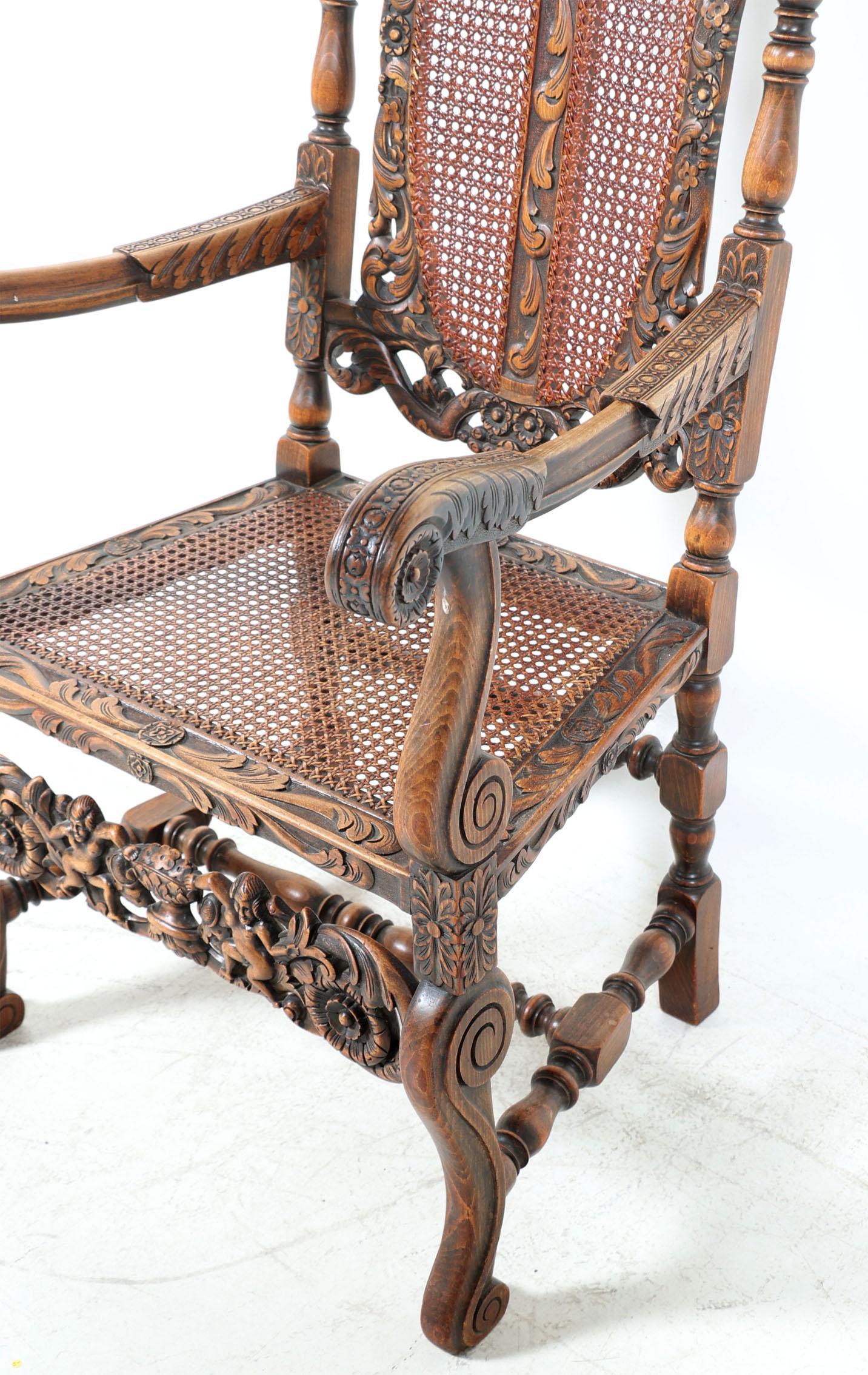 Eikenhouten stoel met webbing zitting en rugleuning