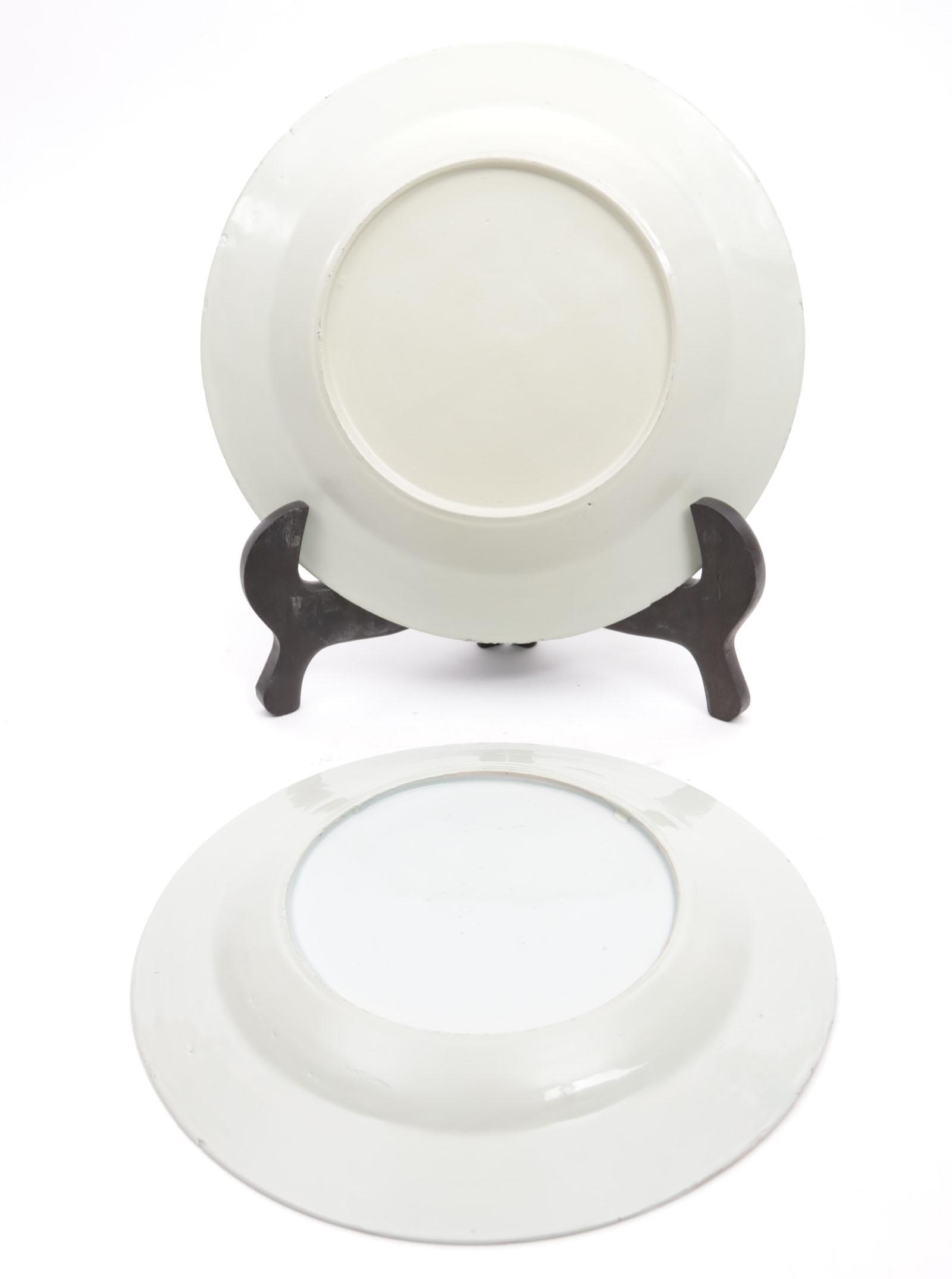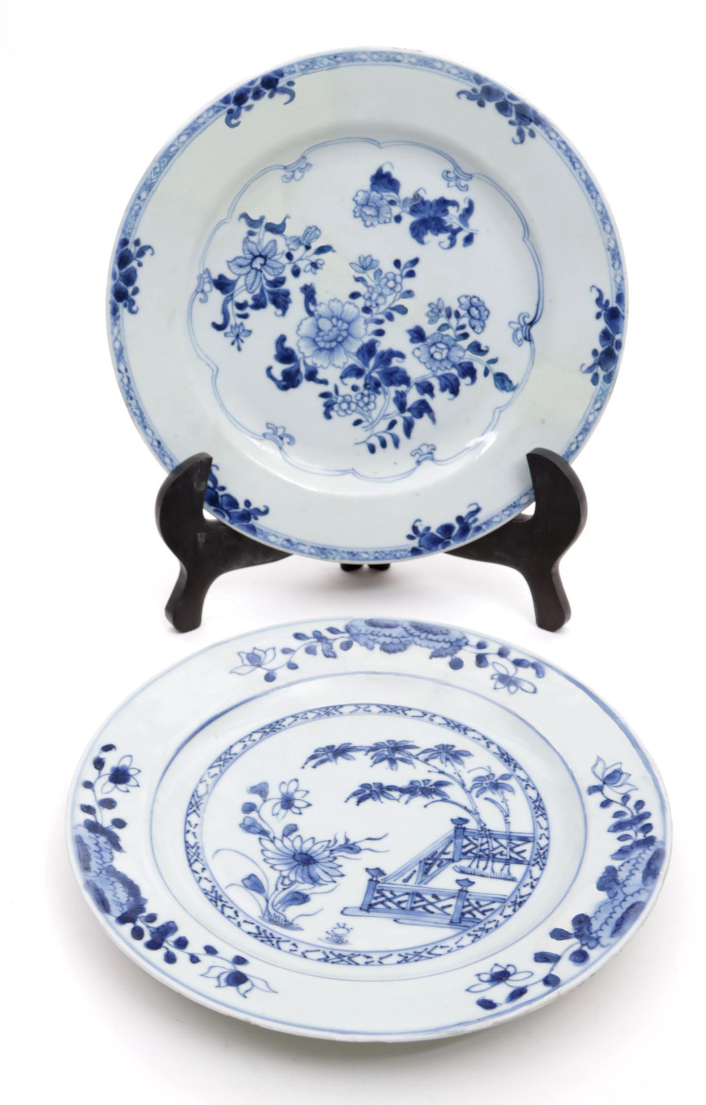2 Divers blauw gedecoreerde Chinees porseleinen borden (gerestaureerd)