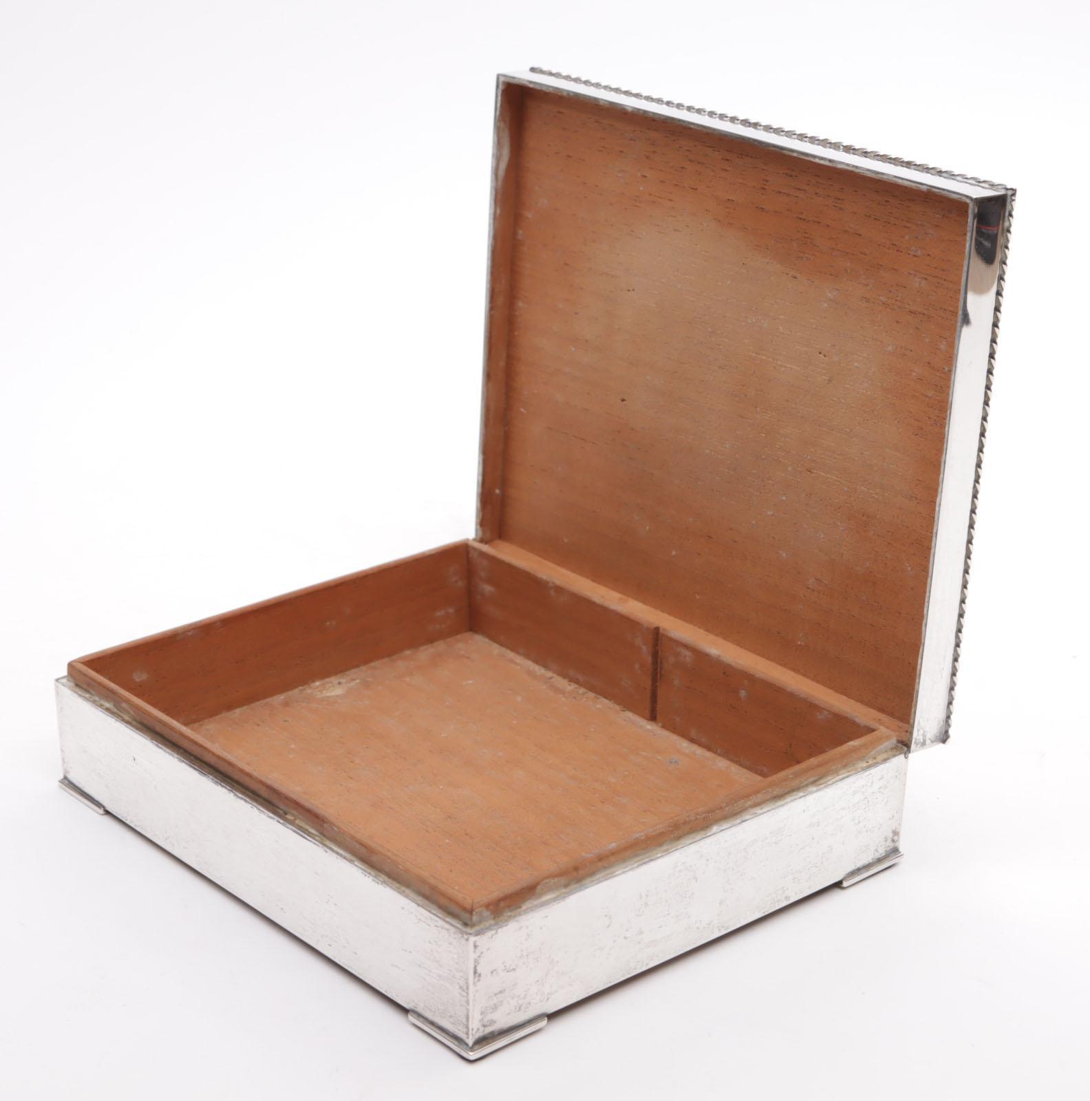 2e Gehalte zilveren sigarettendoos met houten inhoud, totaal 536 gram