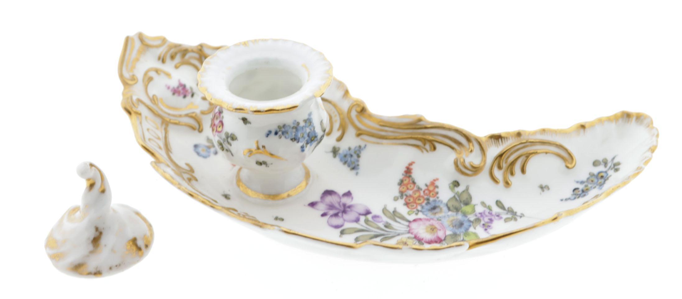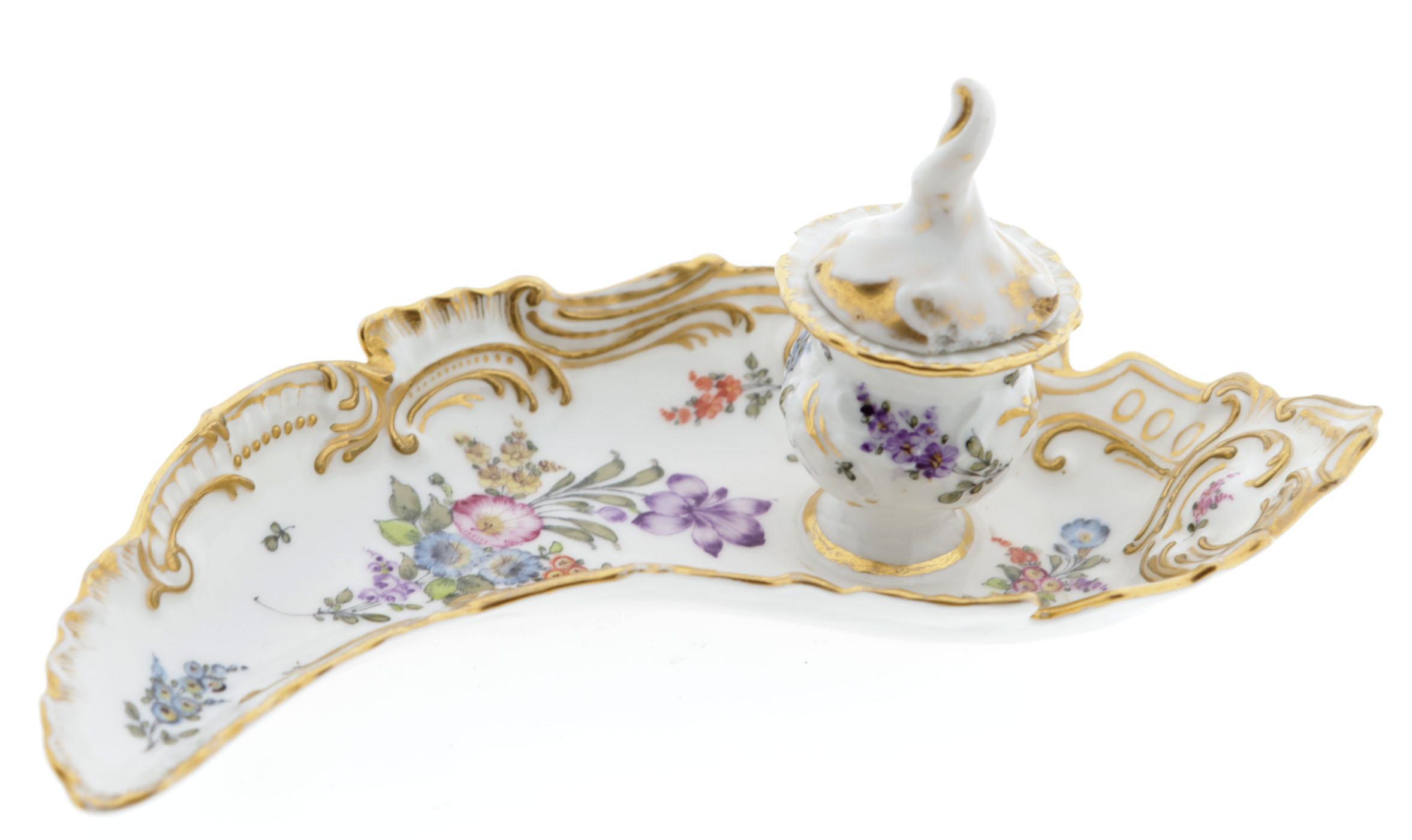 Antieke met bloemen gedecoreerde Duits porseleinen inktstel, Ludwigsburg, ca.1795