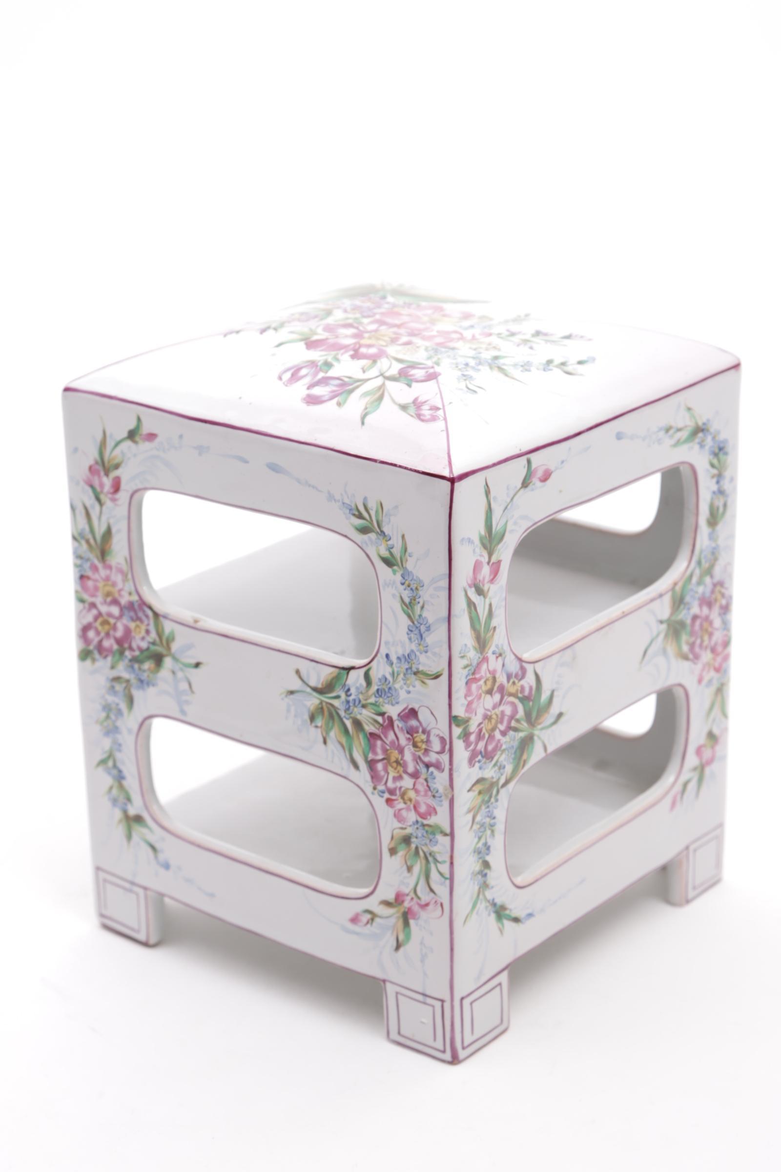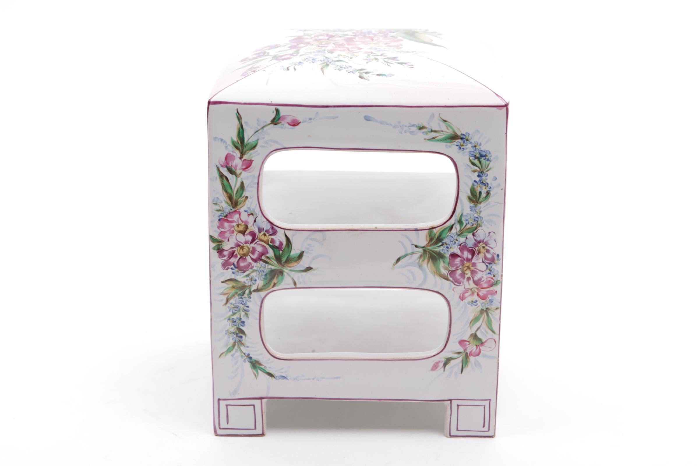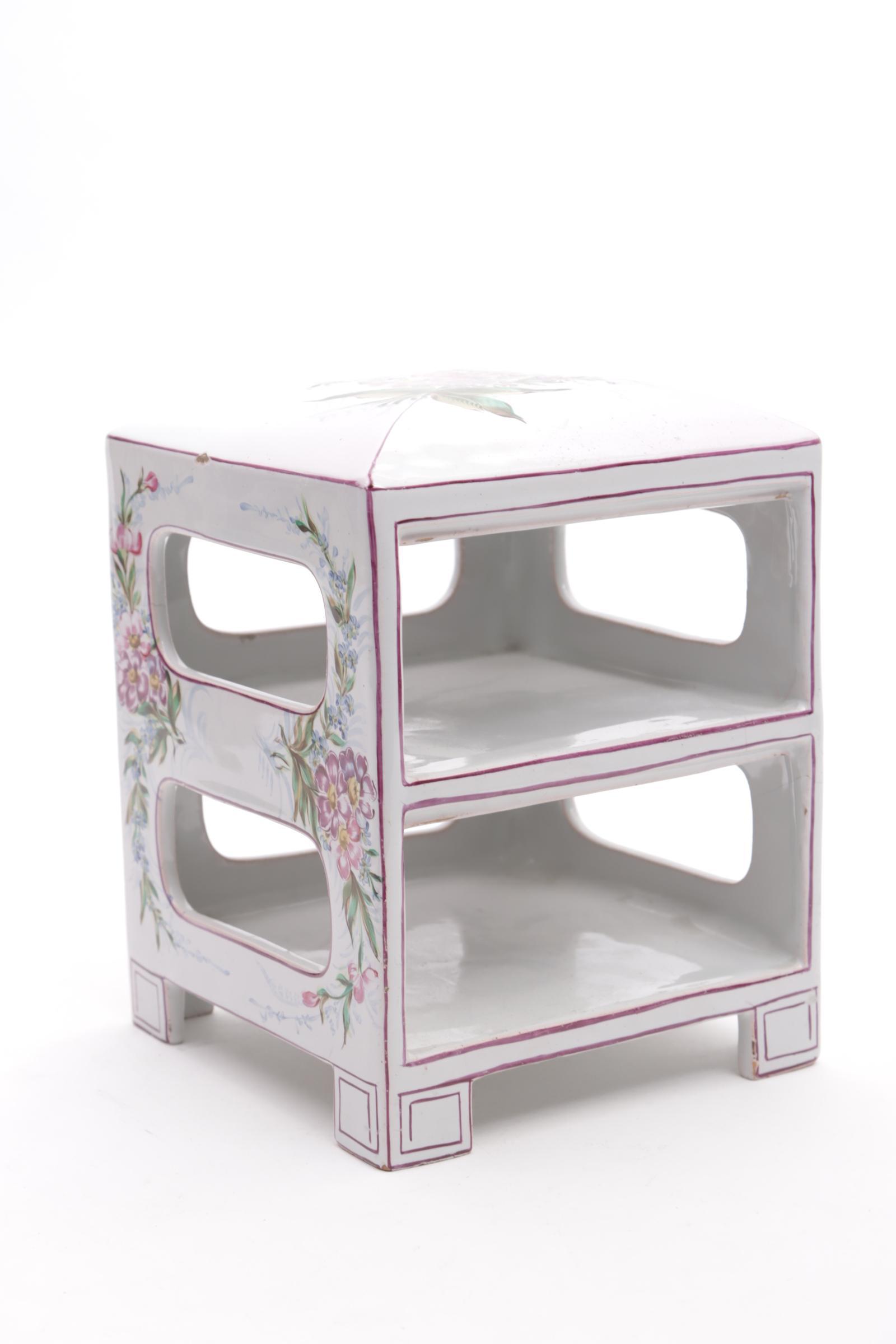 Met bloemen beschilderd porseleinen etagèrekastje, h.19 x b.14 x d.15 cm.