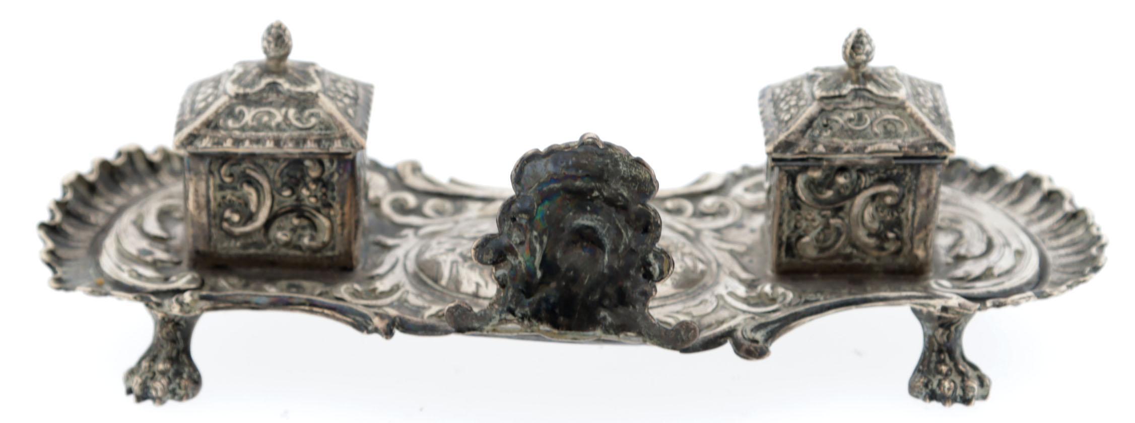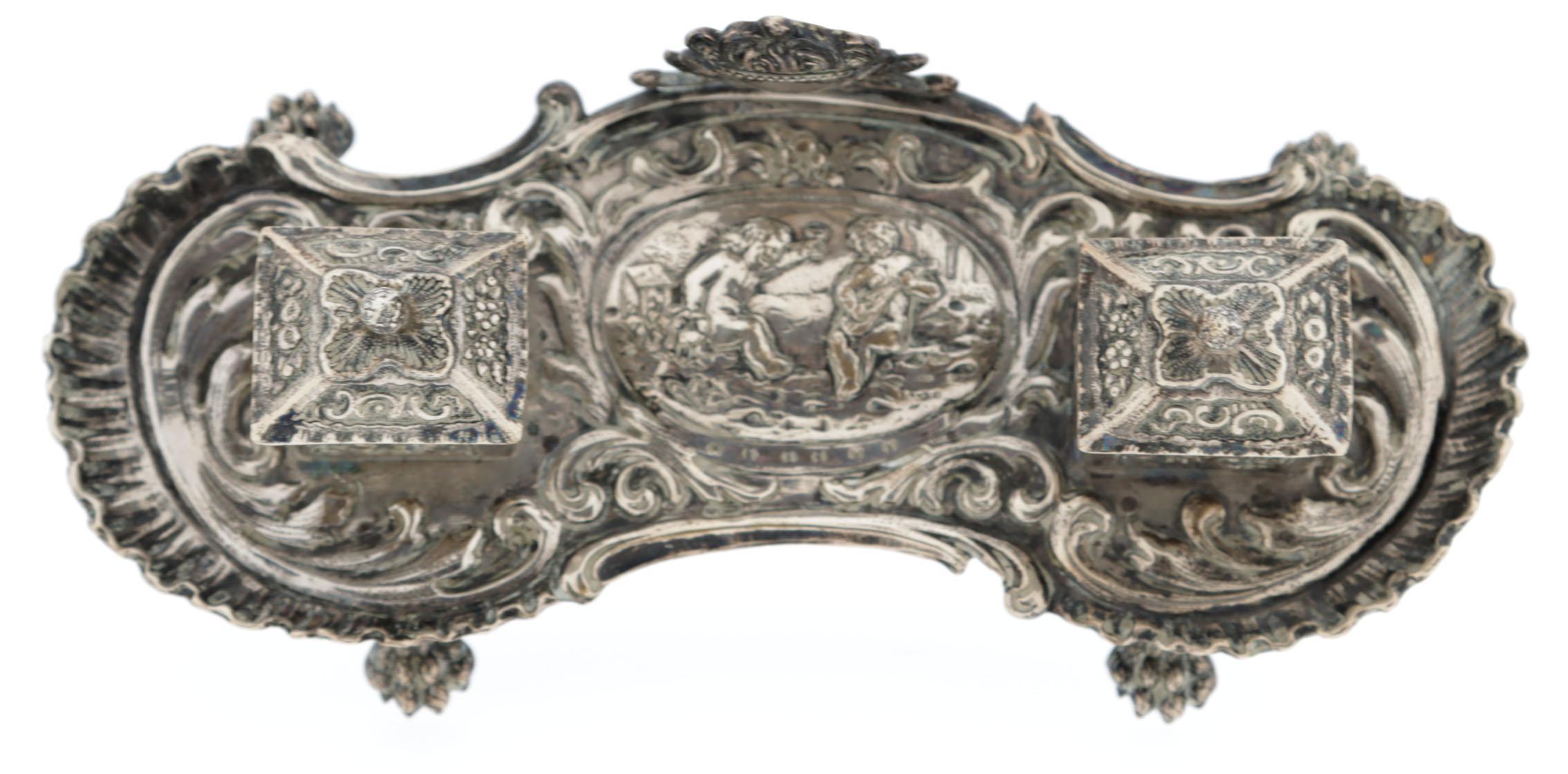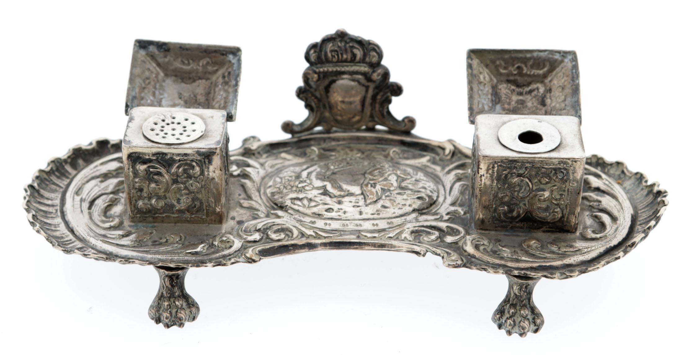 Rijkbewerkt met engelen gedecoreerde 3e gehalte zilveren inktstel, 216 gram