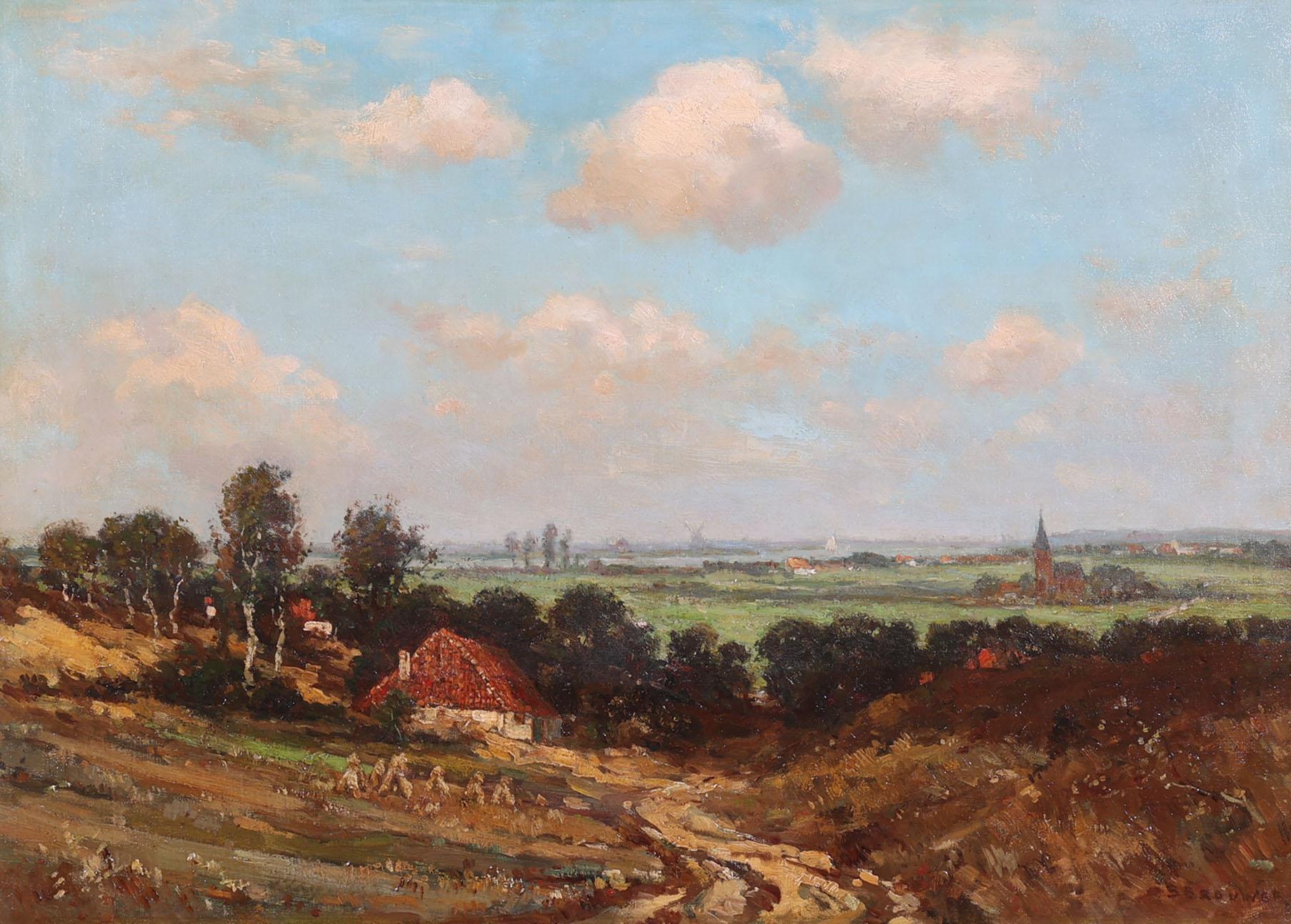 Berend Jan Barend Brouwer (1872-1936), Panoramisch landschap, olieverf op doek, 50 x 70 cm.