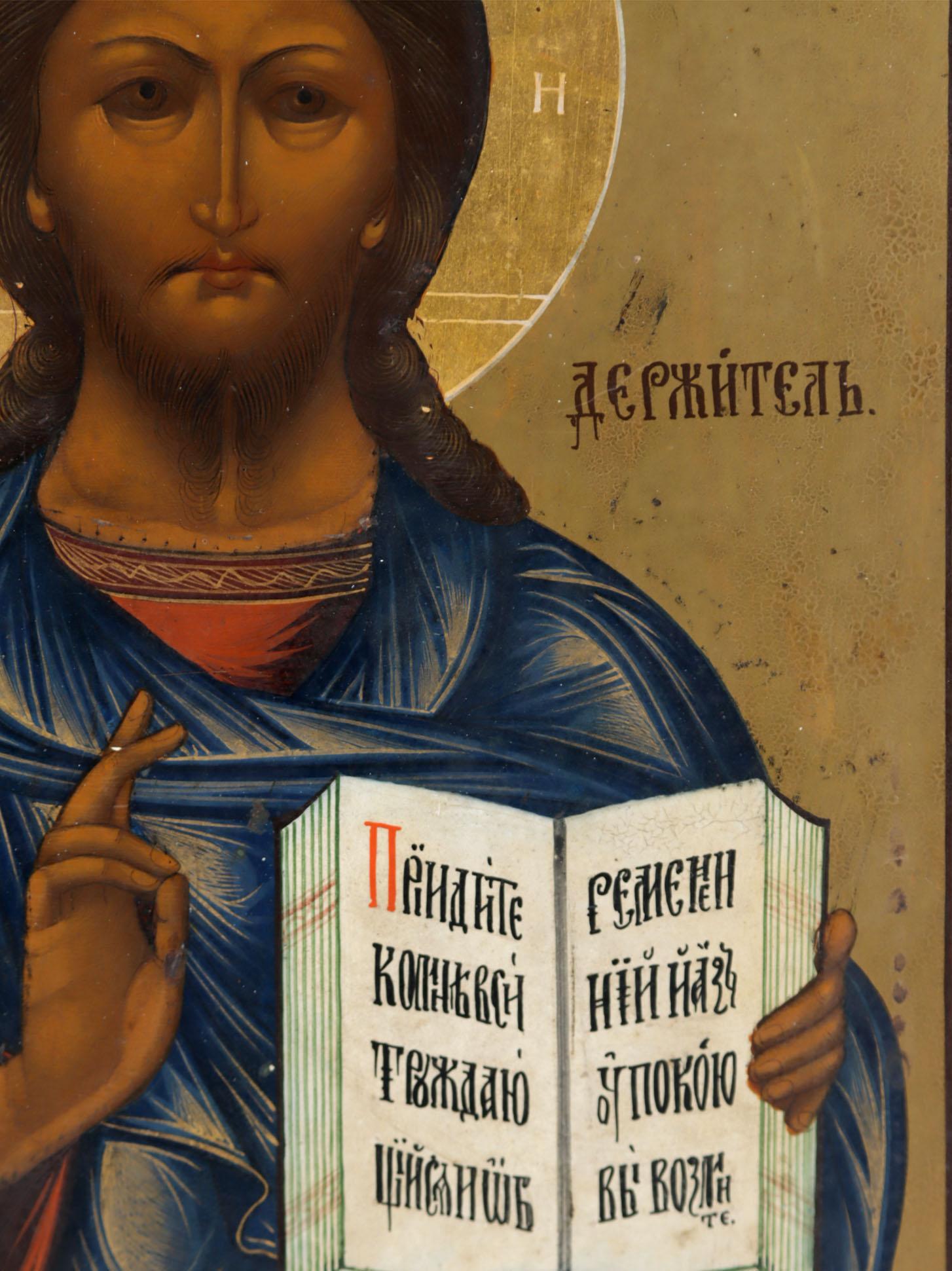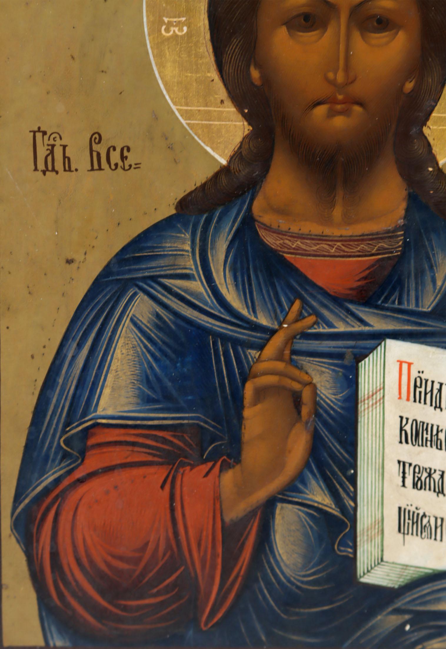 Oud Russisch icoon met voorstelling Christus Pantocrator, 32 x 26,5 cm.