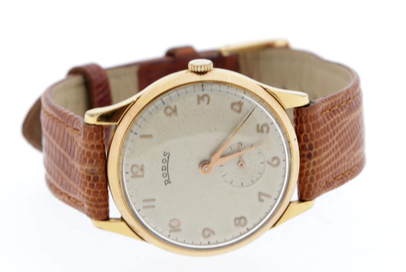 Vintage Rodos polshorloge met cognackleurige hagedissen lederen band, handopwind
