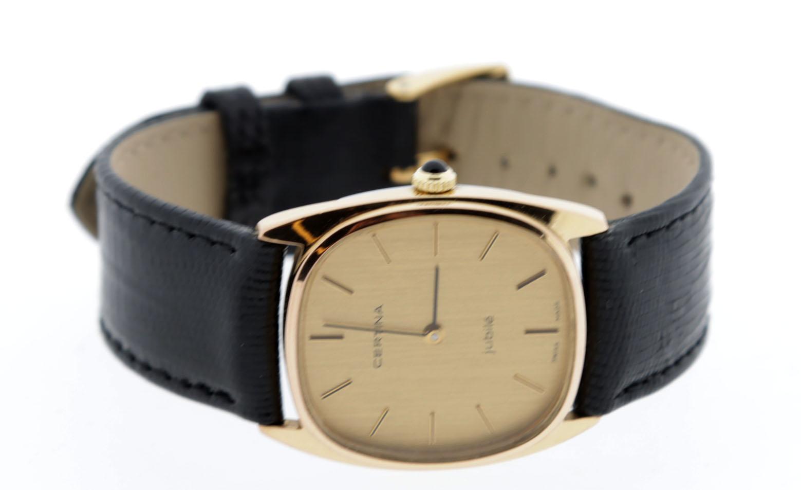 Vintage Certina Jubilé polshorloge met zwarte hagedissen lederen band, handopwind