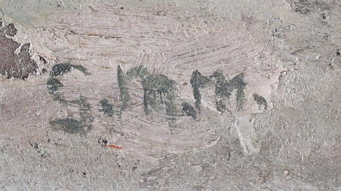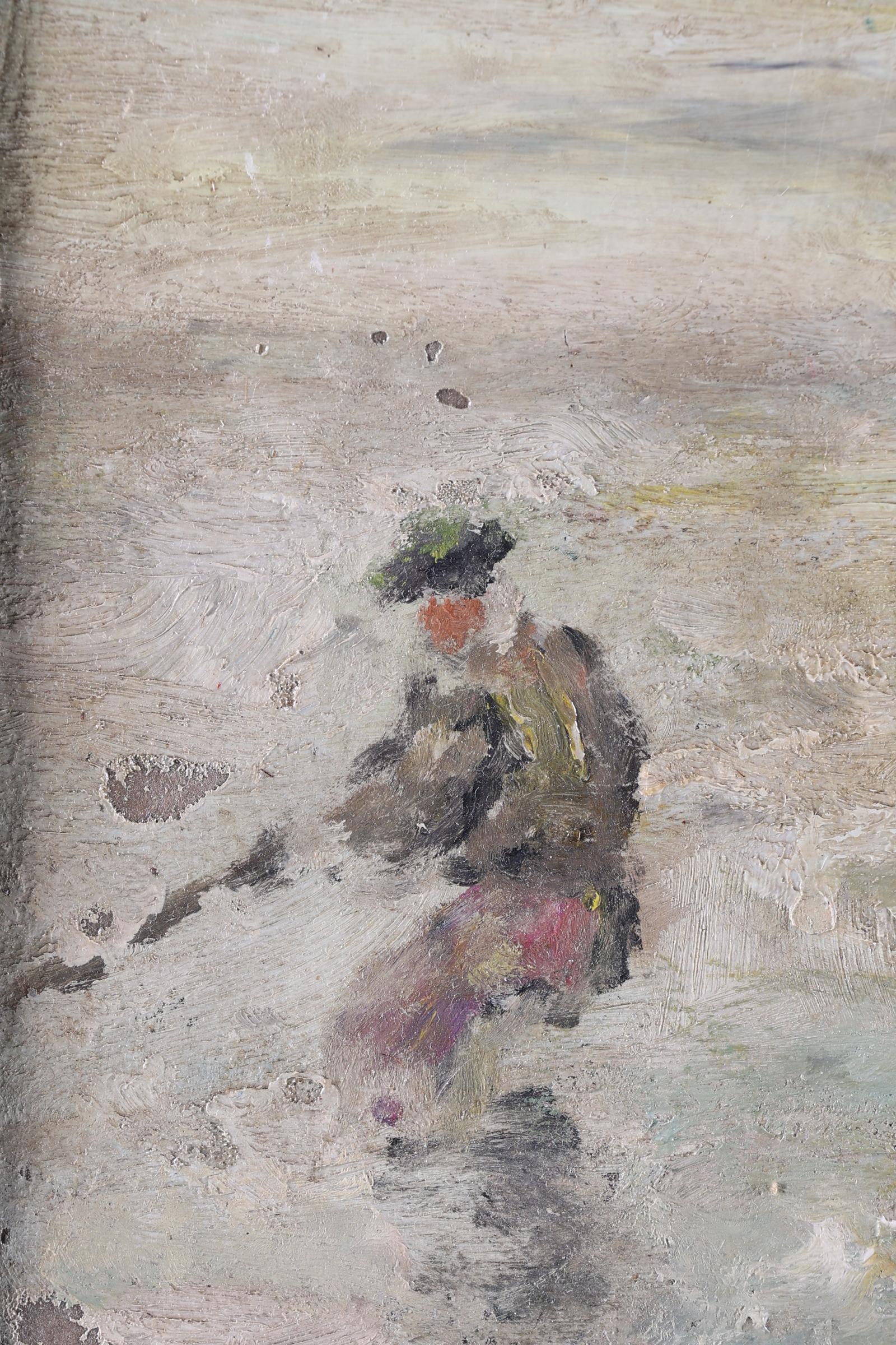 Monogram G.M.M., Schelpenvisser met paard en wagen aan het strand, maroefle, 39 x 30 cm.