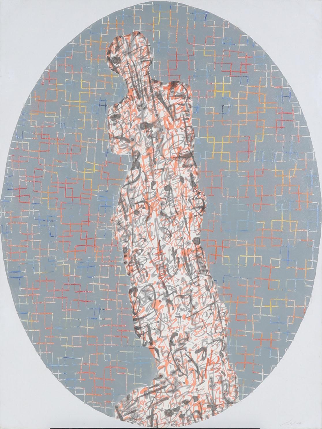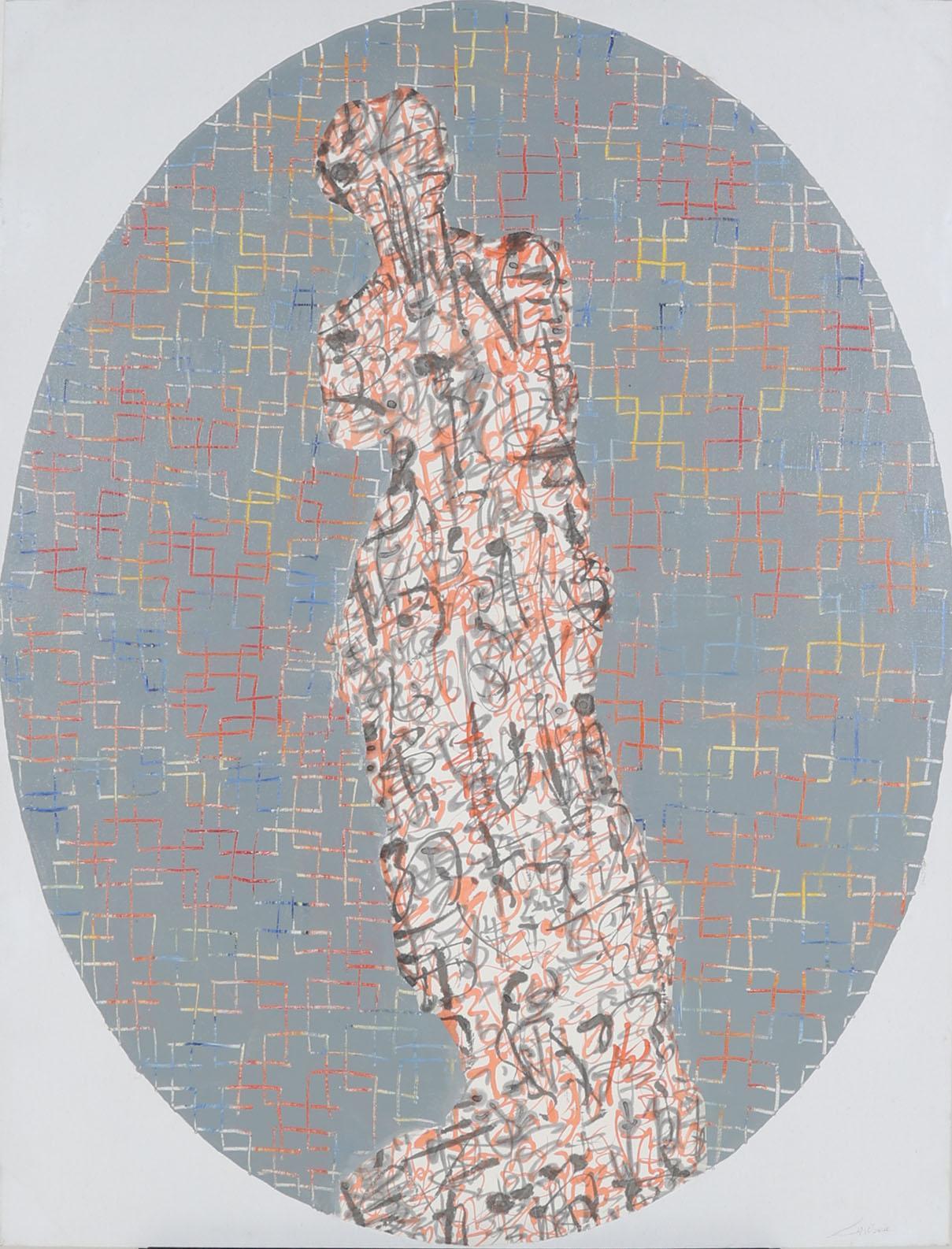 Monogram N.N., 'Venus de Milo', acryl op doek, 90 x 120 cm.