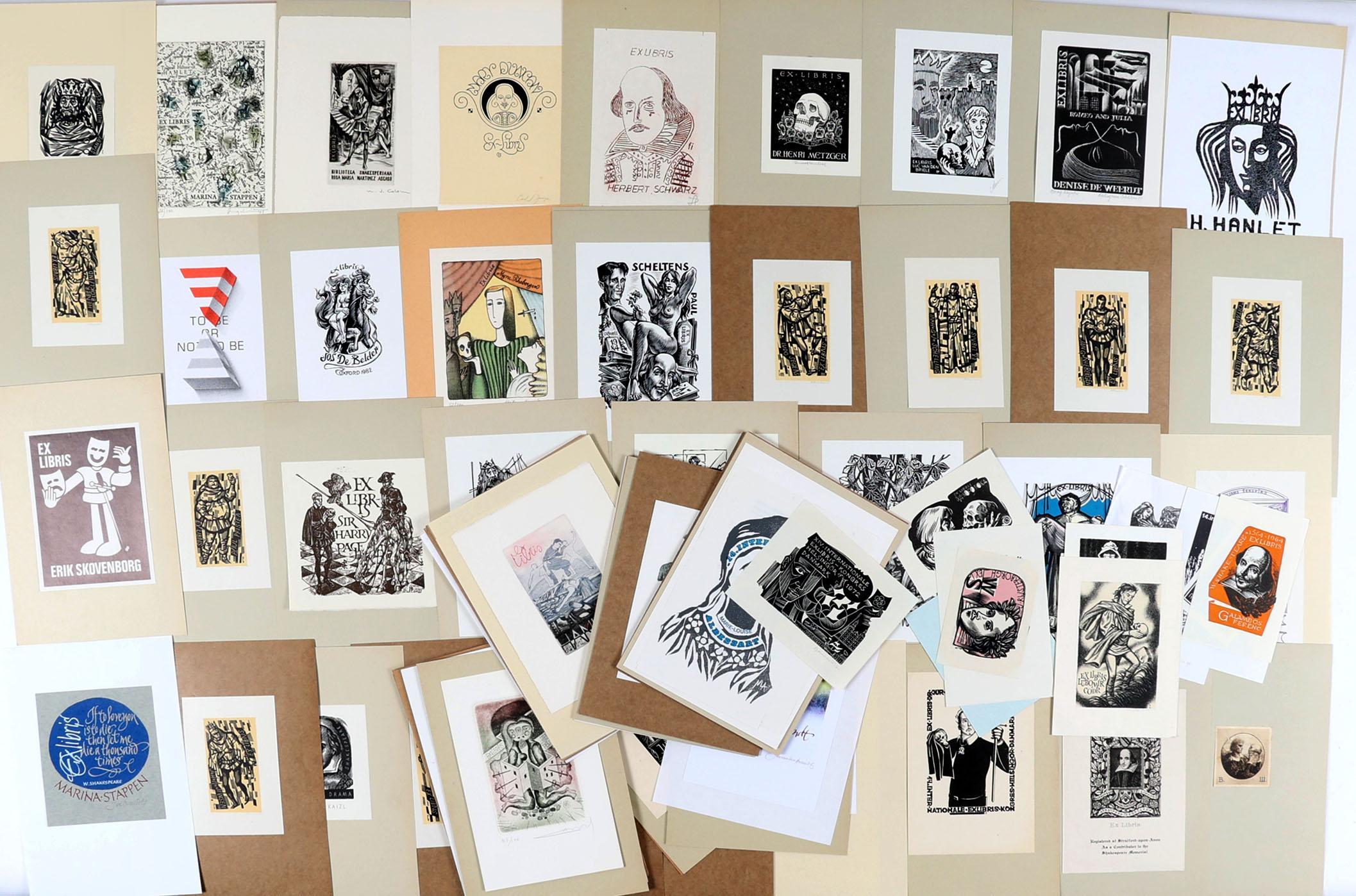 collectie met plm. 80 exl., thema: Shakespeare. Plm. 27 x diepdruk, rest hoogdruk / vlakdruk. Deels gesigneerd. Opgeplakt. Kunstenaars o.a. Augustovic, Aulman, Benca, Burba, Cepauskas, Chernetsova, Felix, Hlavaty, De Backer, Benes, Cinybulk, Beran, Bouda.