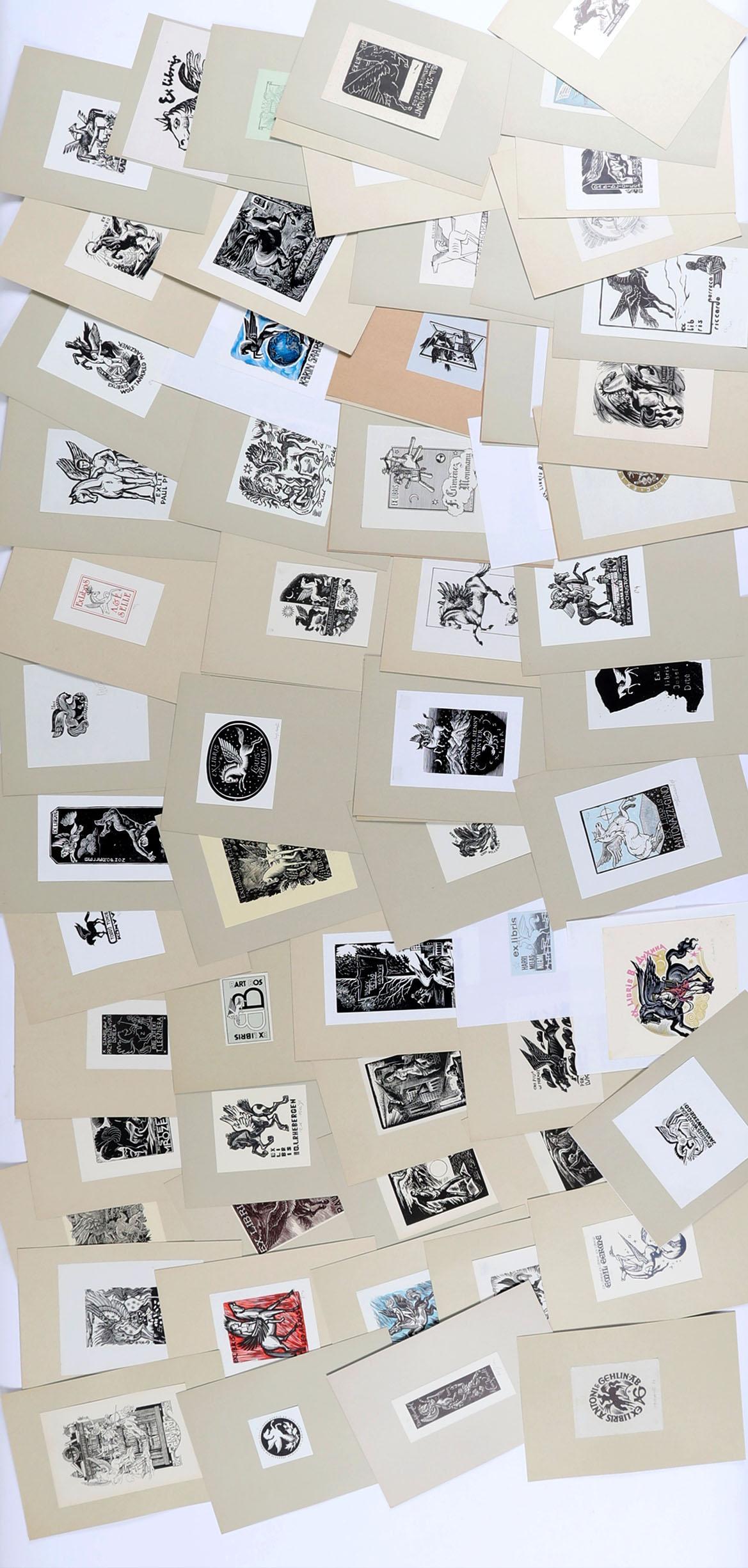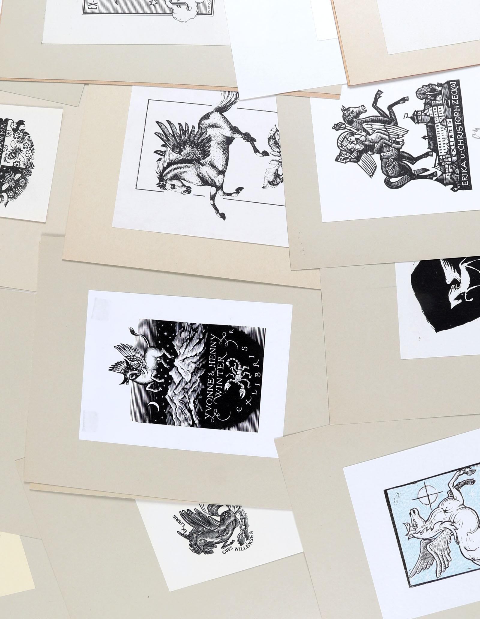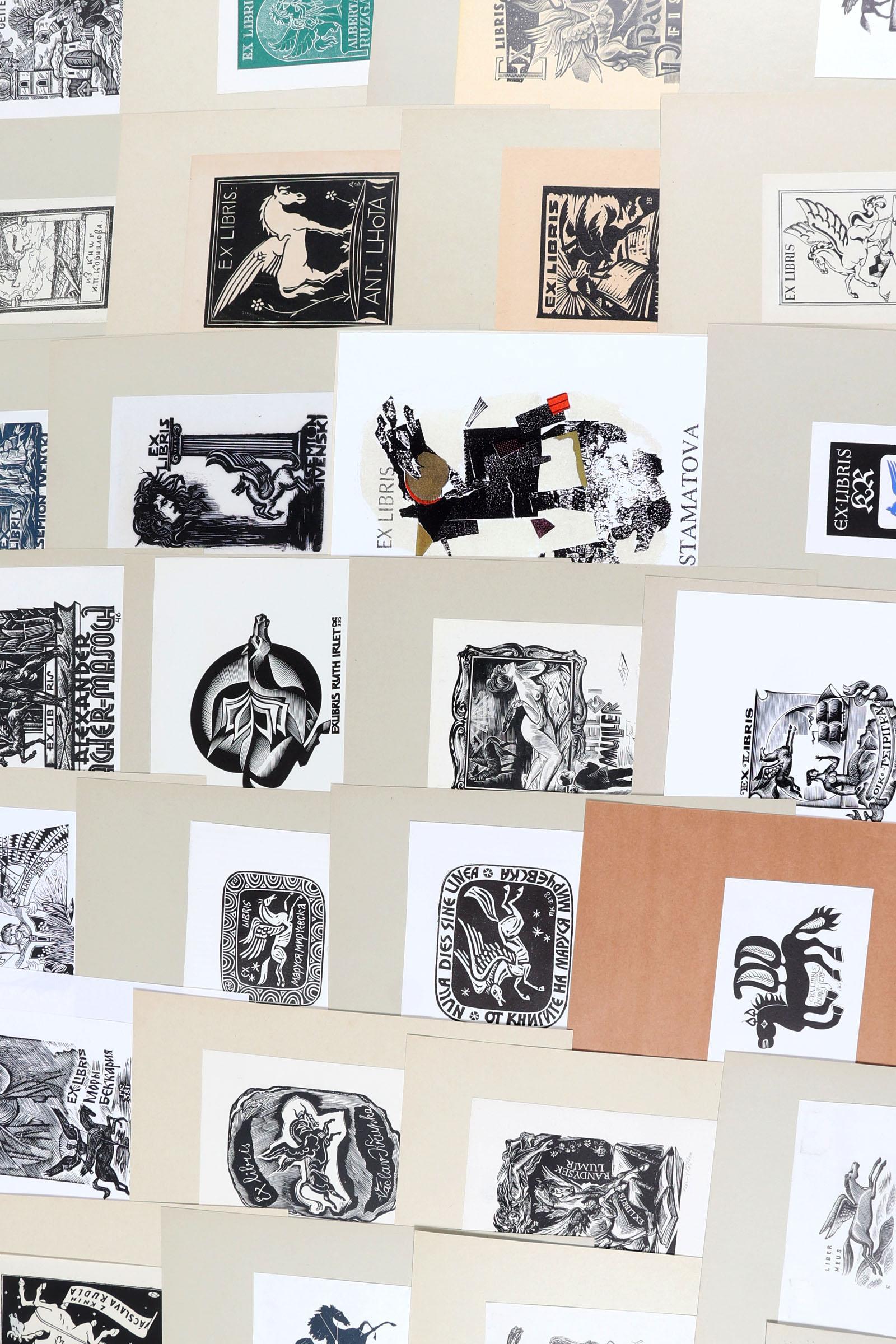 collextie plm. 135 exl, thema: Pegasus. Hoogdruk / vlakdruk. Plm. 60 x gesigneerd. Opgeplakt. Kunstenaars o.a.: Beran, Cinybulk, Gaudaen, Kotrba, Lepp, Lewandowski, Marangoni, Menyhart, Mezl, Voss, Rueter, Da Osimo.