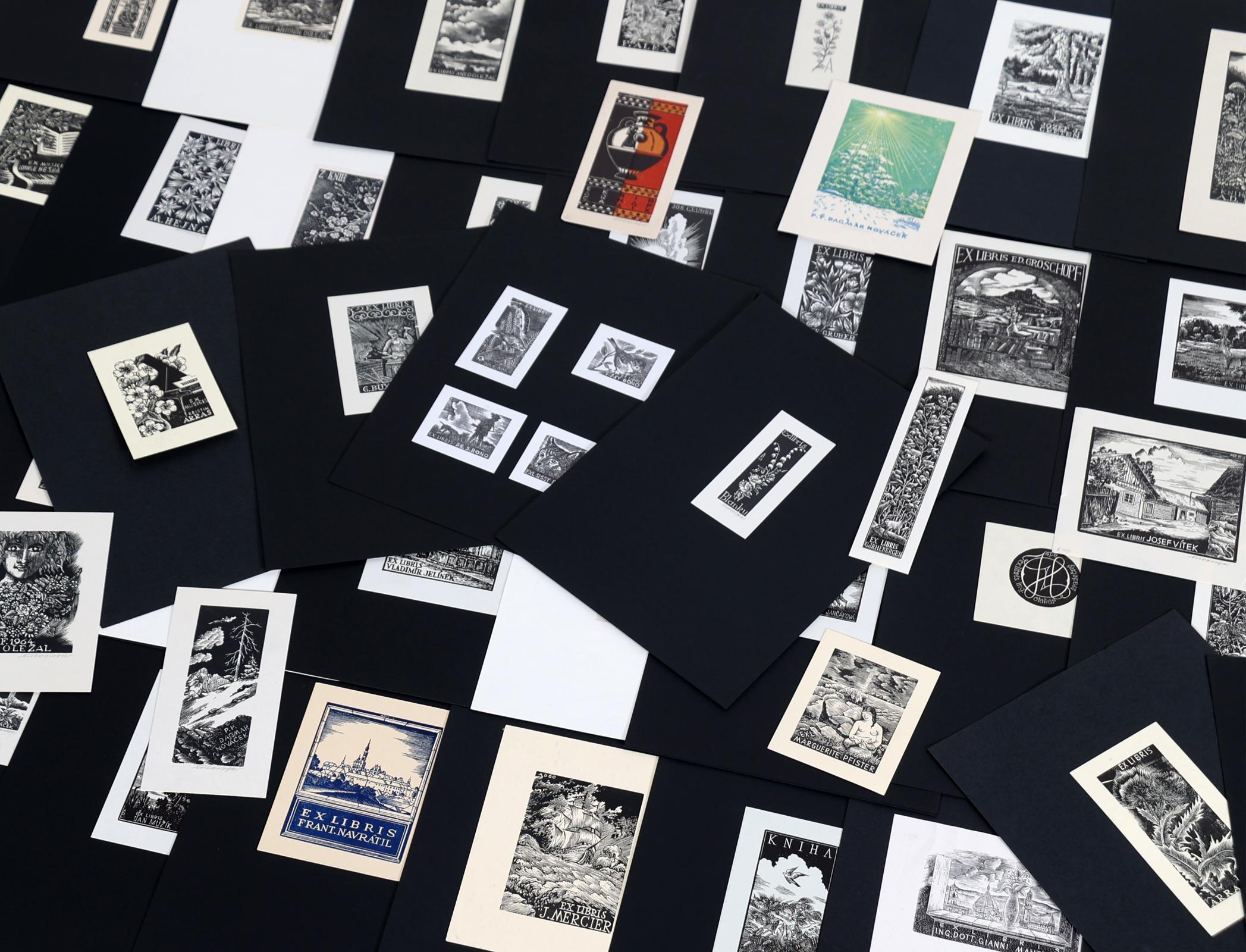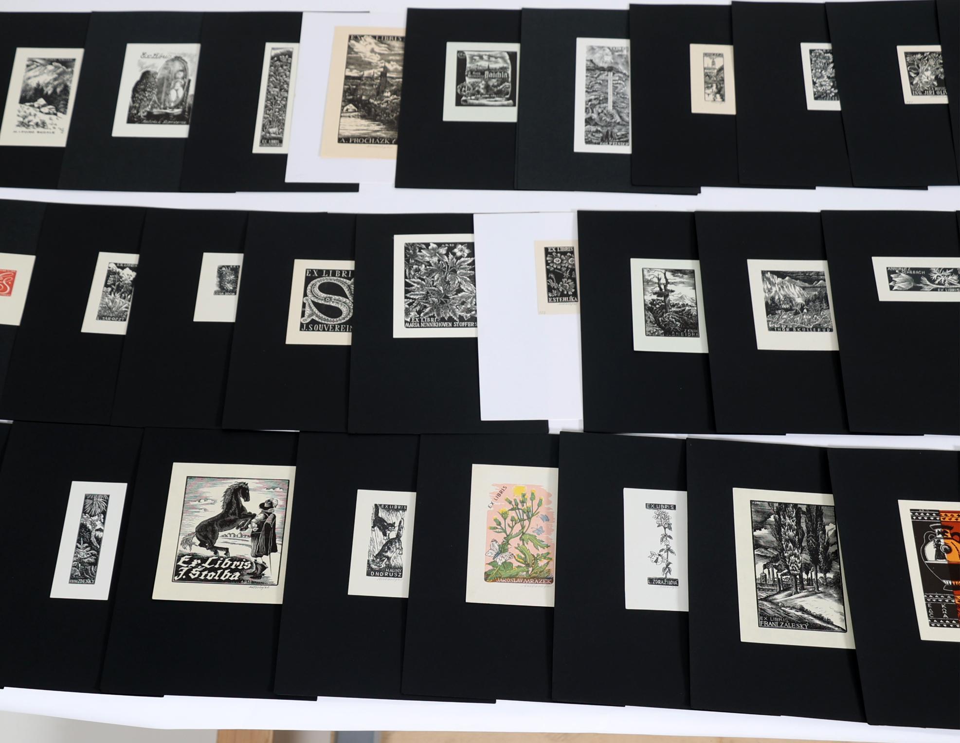 Dolezal, A, plm. 110 exlibris, X2, deels gesigneerd, opgeplakt