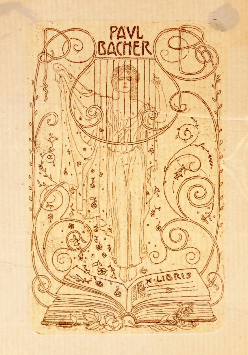 Orlik, E., exlibris voor Paul Bacher, ets, niet gesigneerd, opgeplakt geweest