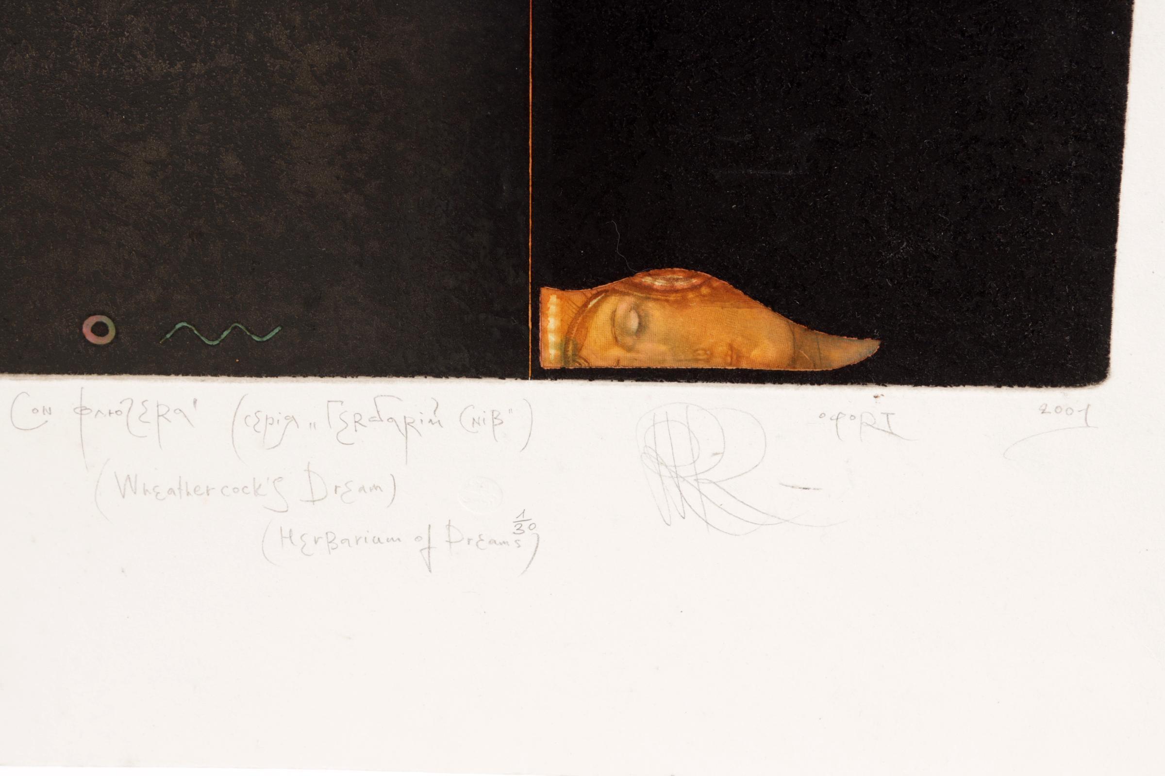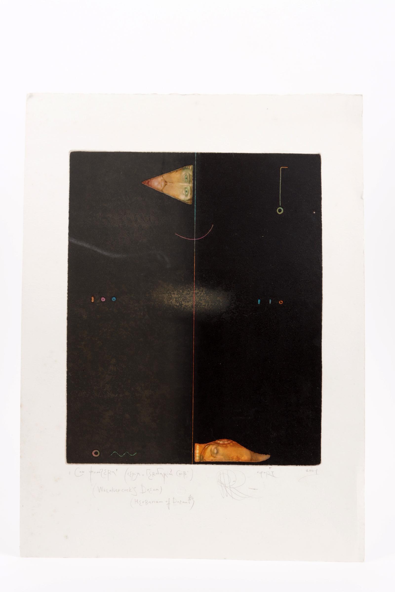 Romanyshyn, R., prent 'wheathercocks dream', diepdruk, 2001 genummerd en gesigneerd (1/30), 325 x 260 mm. Papier iets gevlekt (buiten de afbeelding).