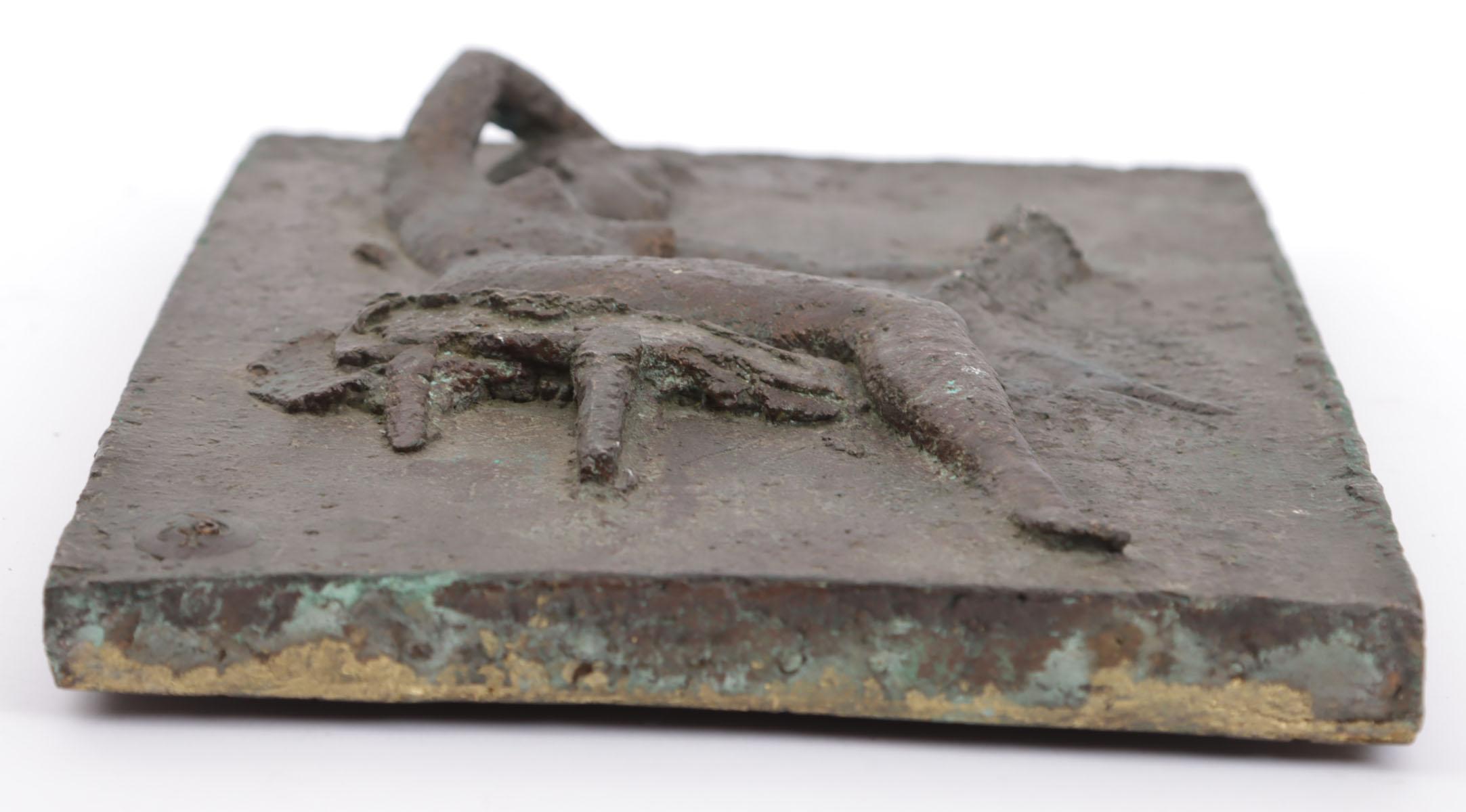 Pieter Starreveld (1911-1989), gepatineerd bronzen reliëf plaquette (1959-1960) met voorstelling van naakt, zittend op tambouret met spiegel, 31 x 21,5 cm., gemonogrammeerde duimafdruk in het brons PS l.o., vgl. literatuur: C. van Blommestein et.al., Pieter Starreveld 1911-1989, deel 12, uit reeks Monografieën van het Sculptuur Instituut, Sculptuur Instituut /Museum Beelden aan Zee, Den Haag, 2022, p. 154, nr. 201