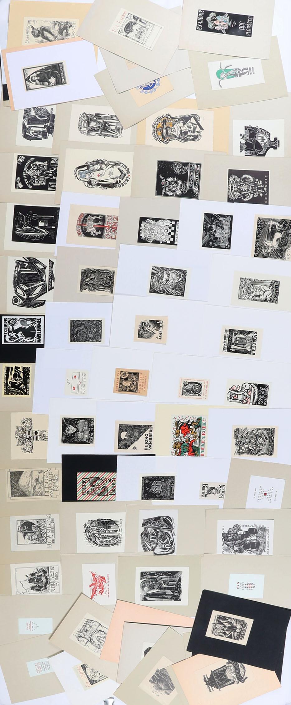 collectie plm. 80 Nederlandse exl., hoogdruk / vlakdruk, deels gesigneerd, opgeplakt. Kunstenaars o.a.: Anton Pieck, Puettmann, Van Rossem, Roozendsaal, Van Luyn, Van Dobbenburgh, Van Doorn, Fre Cohen, Briede.