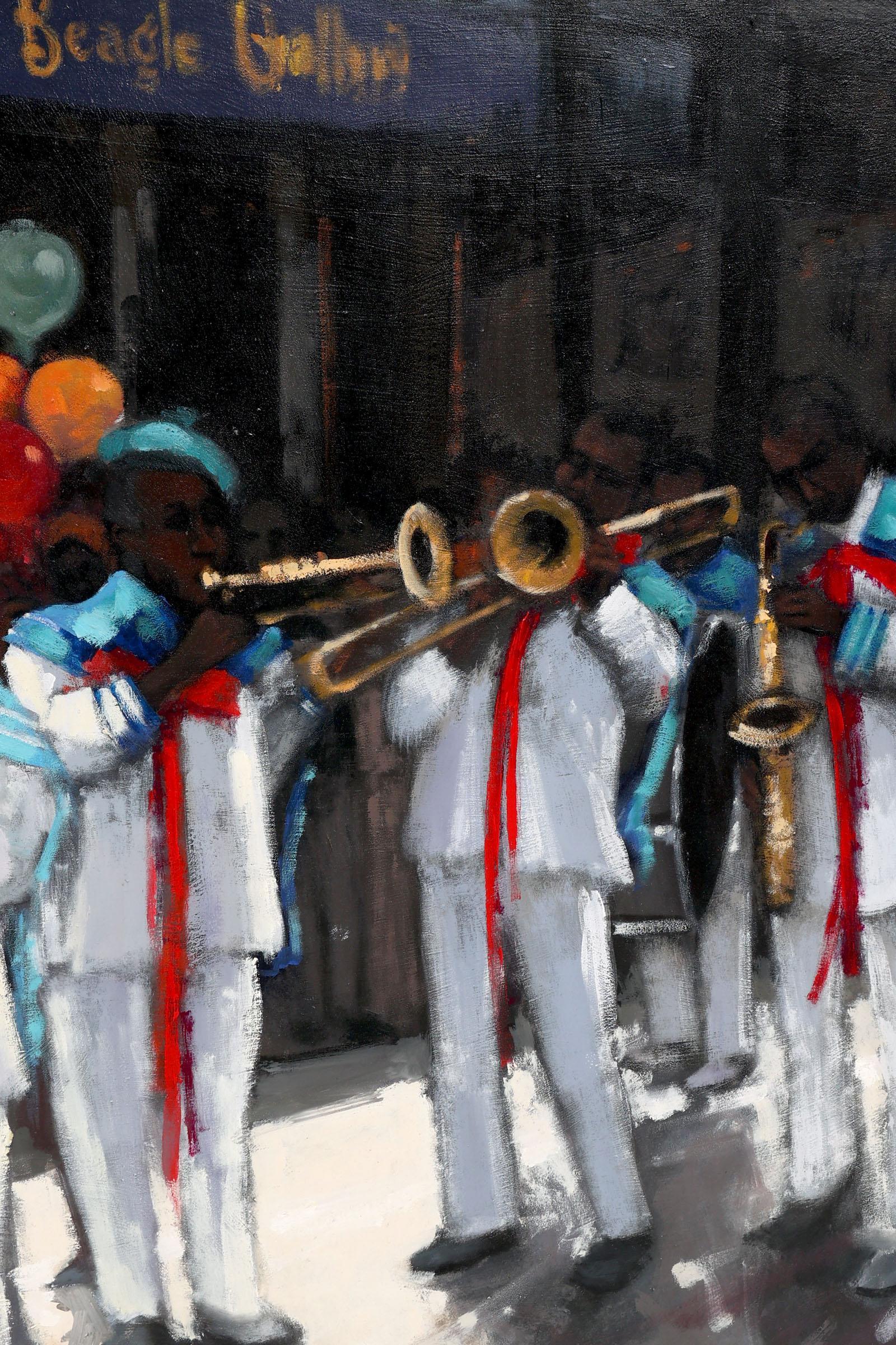 Ana Perpinyà (Barcelona 1965), Carnaval en Londres, olieverf op doek, 120 x 193 cm.