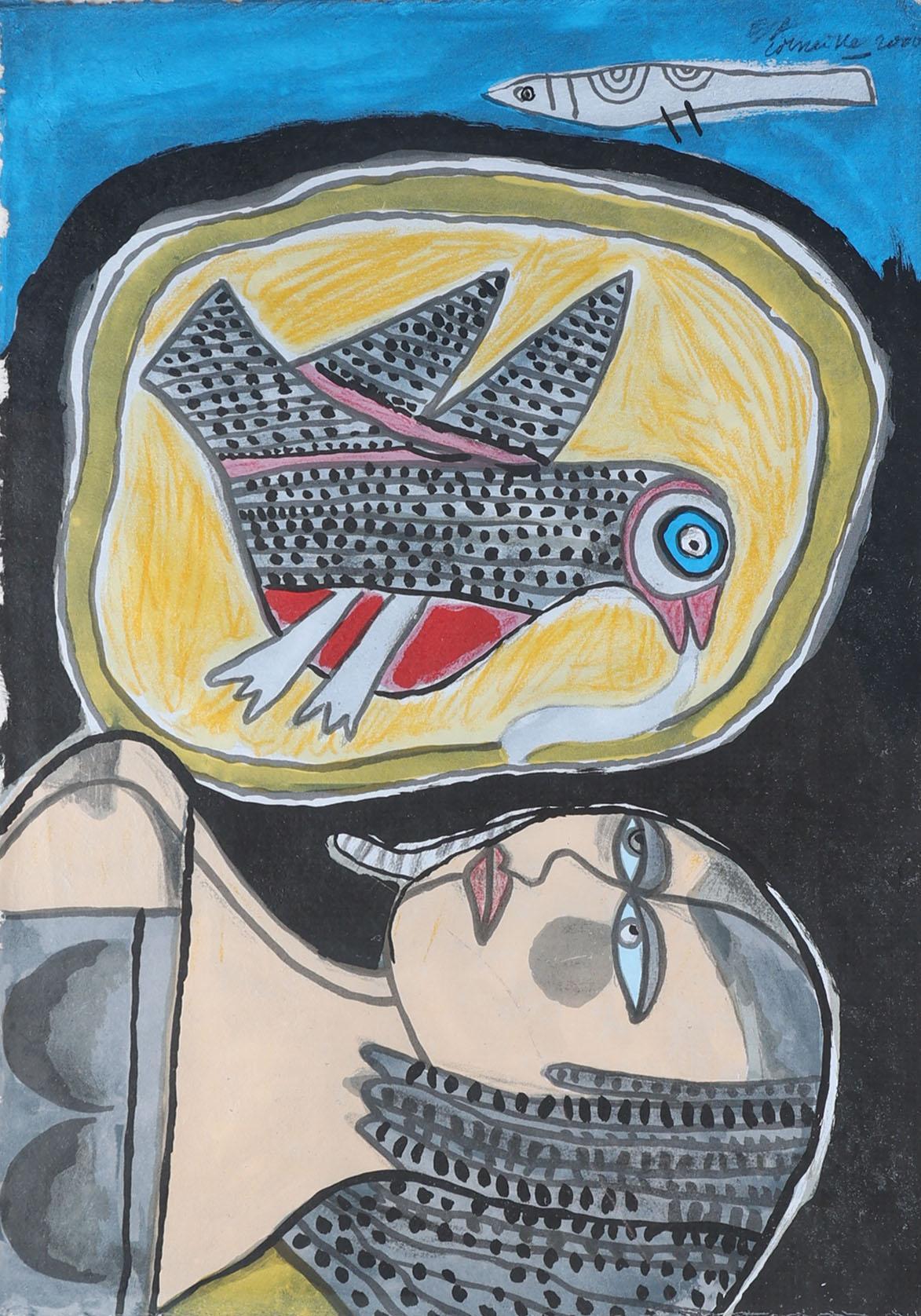 'Corneille', alias van Cornelis Guillaume van Beverloo (1922- 2010), Vrouw met vogel en vis, zeefdruk op handgeschept kokospapier, gesigneerd en gedateerd 2000, 75 x 55 cm. of 106 x 87 cm. Provenance: collectie kunsthandel Elisabeth den Bieman de Haas, Amsterdam