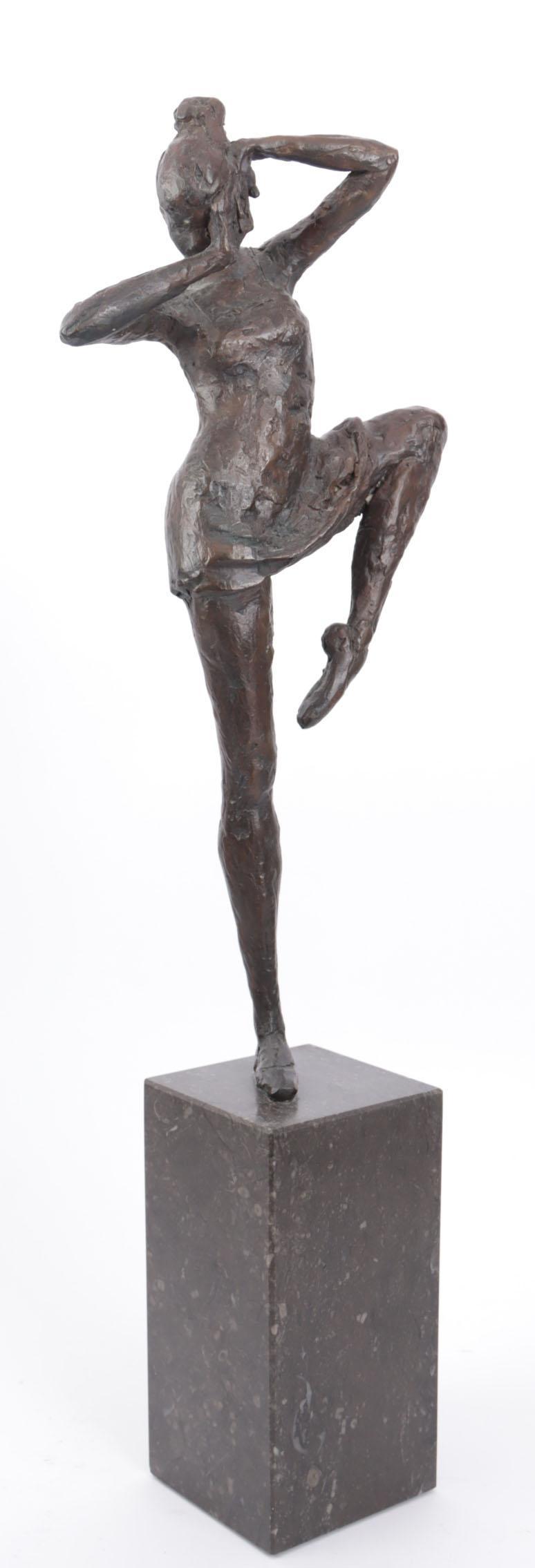 Marjolijn de Bruin (1966), Turn out / turn in, bronzen sculptuur op hardstenen voetstuk, gesigneerd, oplage 2/7, h.65 cm. Provenance: particuliere collectie; rechtstreeks aangekocht bij de kunstenares in 2002 voor 1635 euro