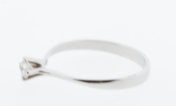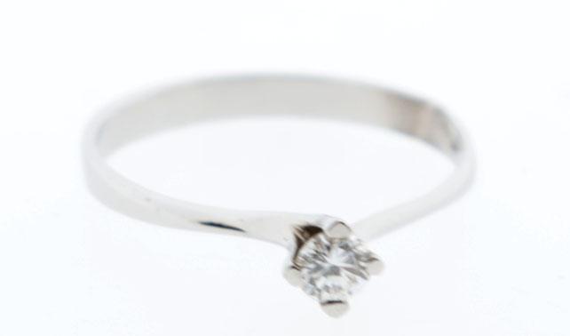 18 Kt. witgouden damesring bezet met een briljant geslepen diamant, ringmaat 17.50