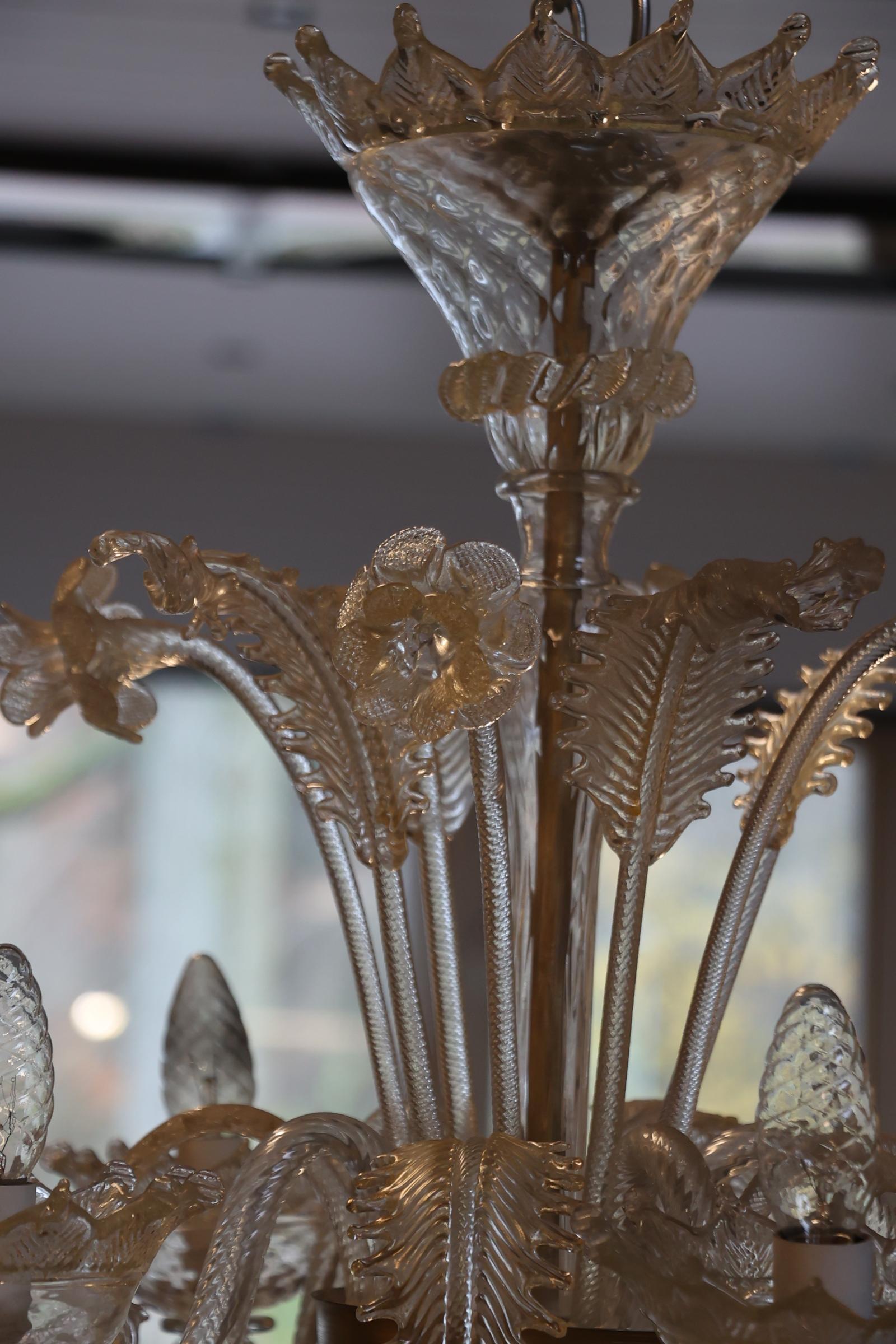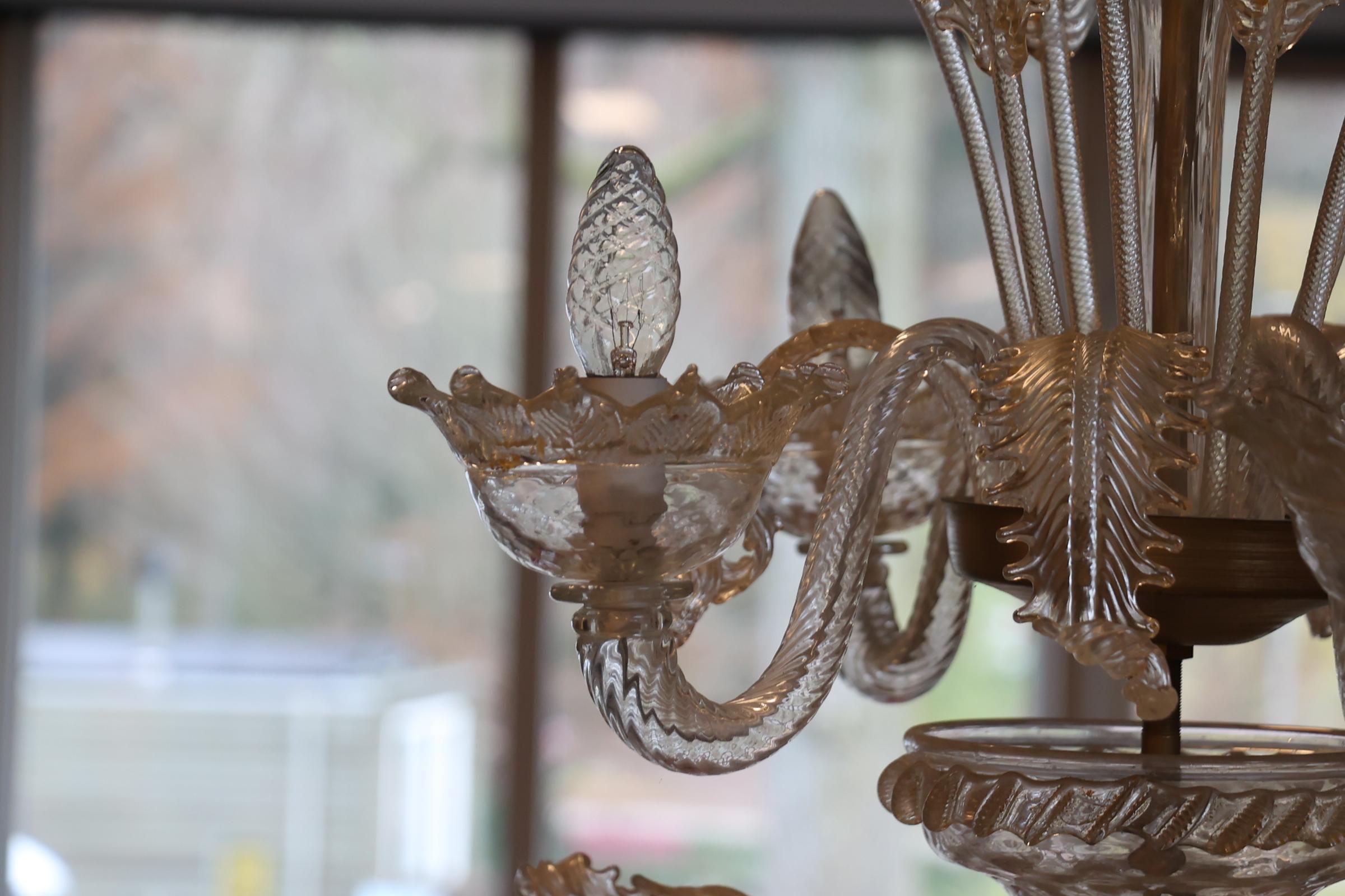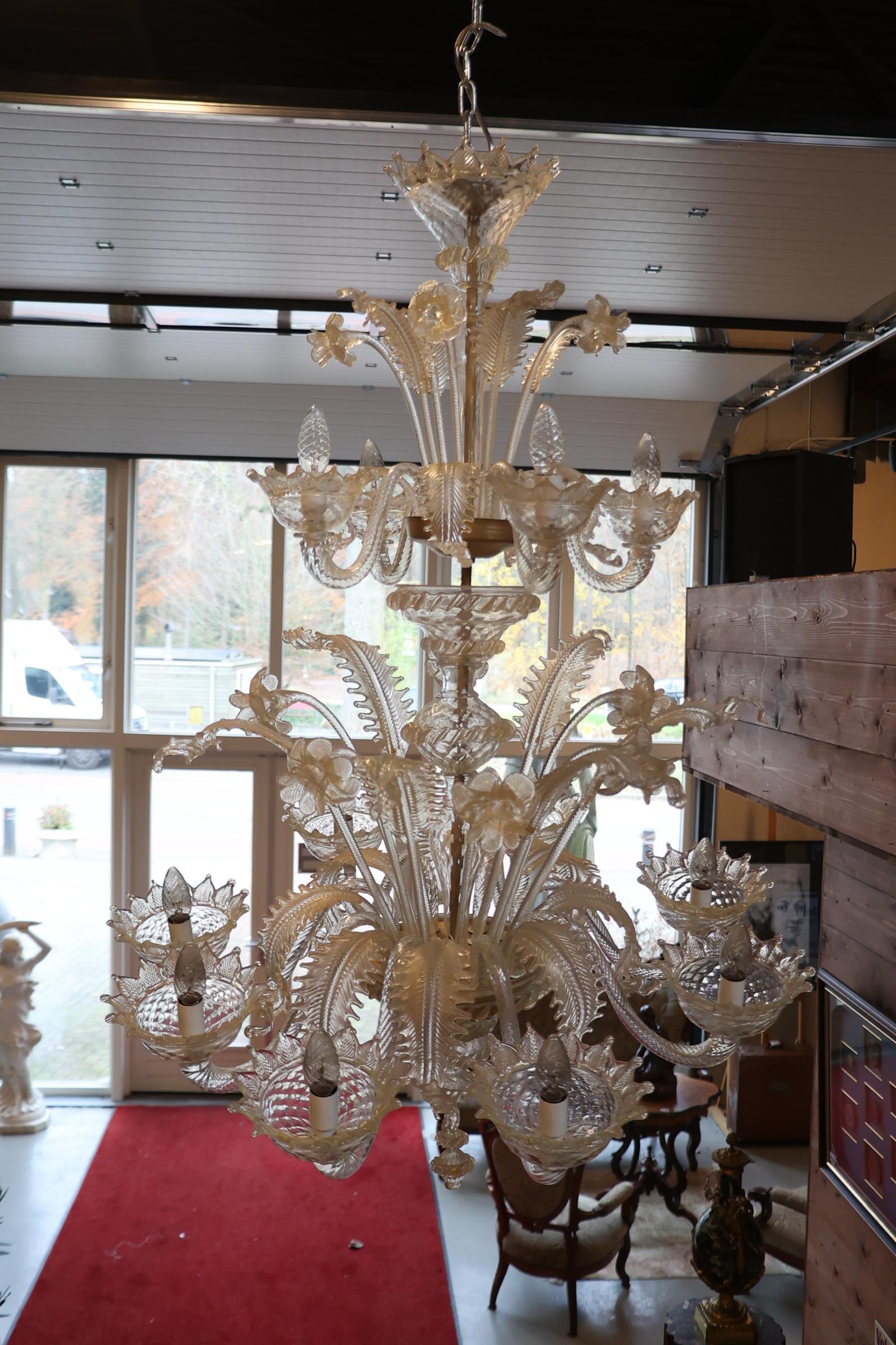 Venetiaanse Murano glazen 12-lichts kroonluchter (stam defect)