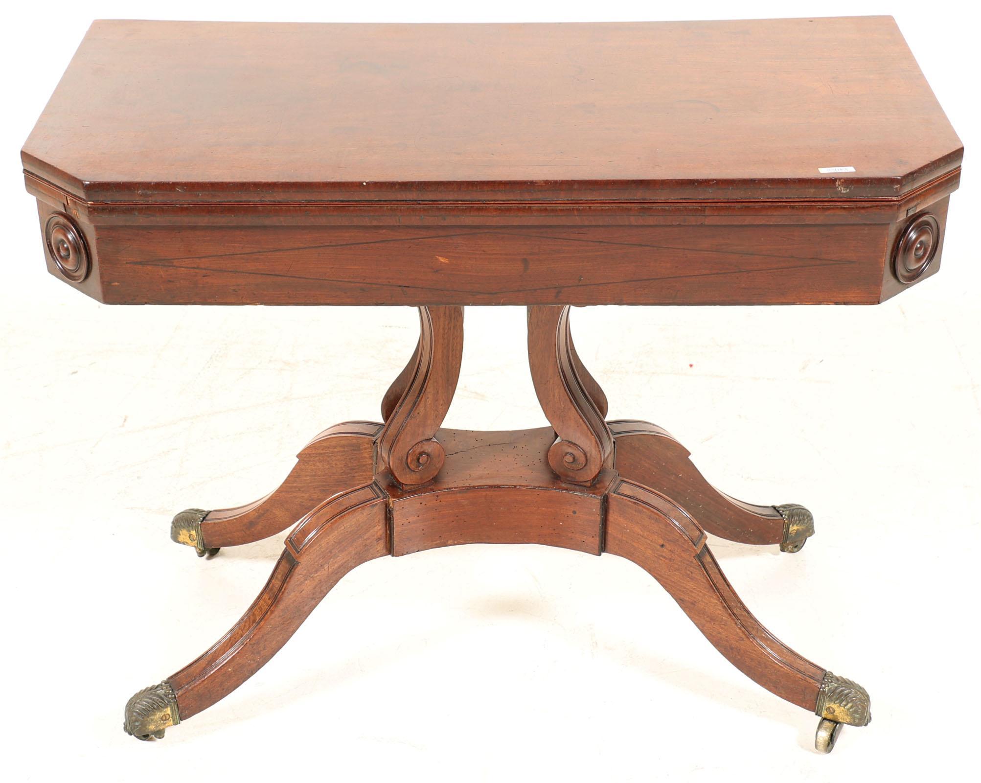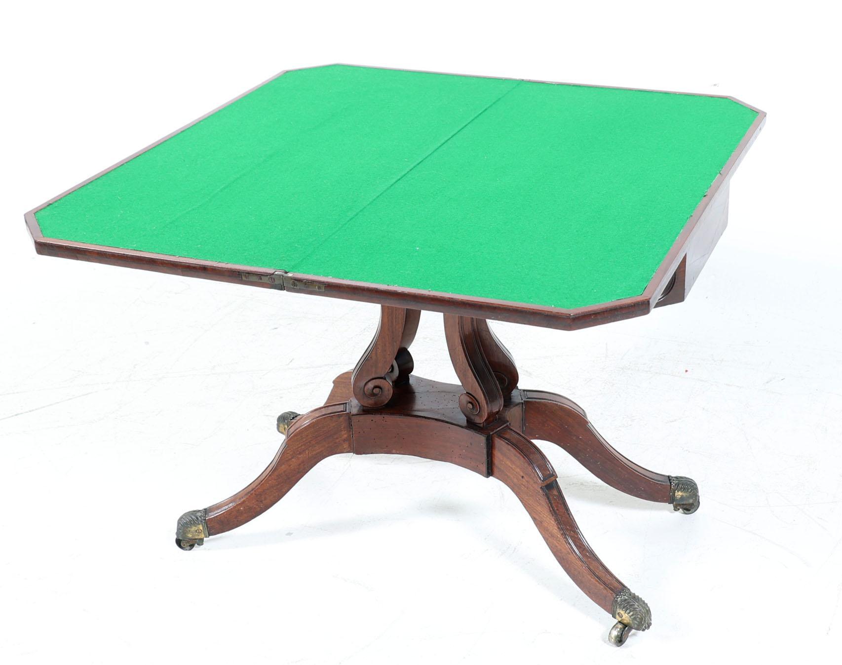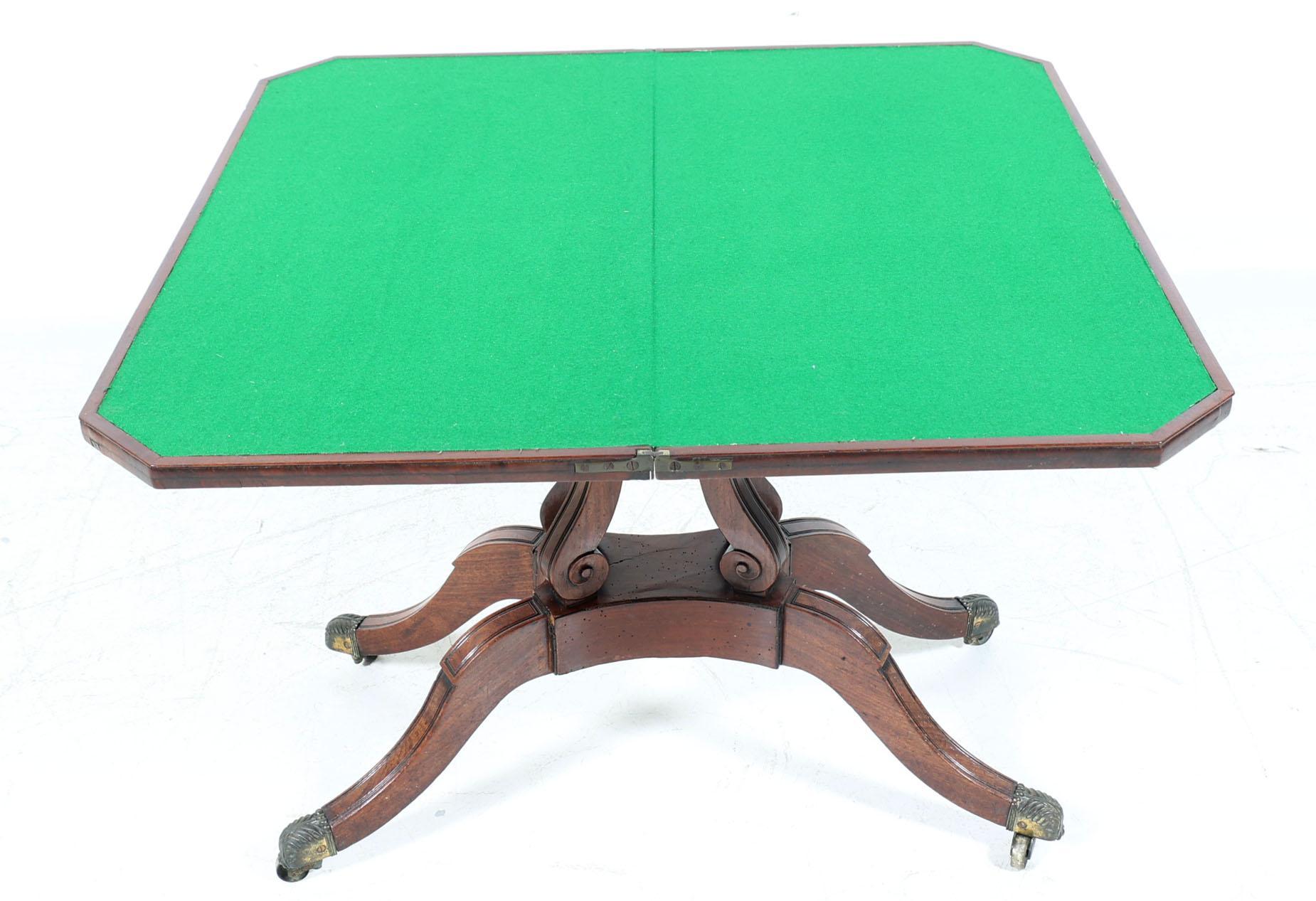 Antieke mahoniehouten speeltafel met groen vilten blad, h.71 x b.90 x d.45 cm.