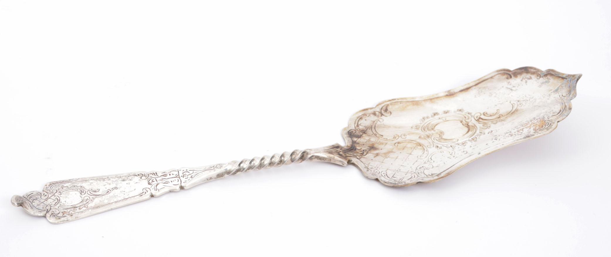 Bewerkt 2e gehalte zilveren taartschep, 103 gram