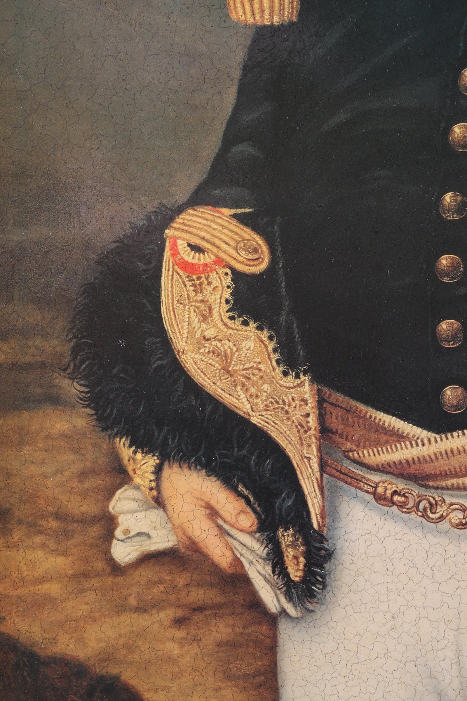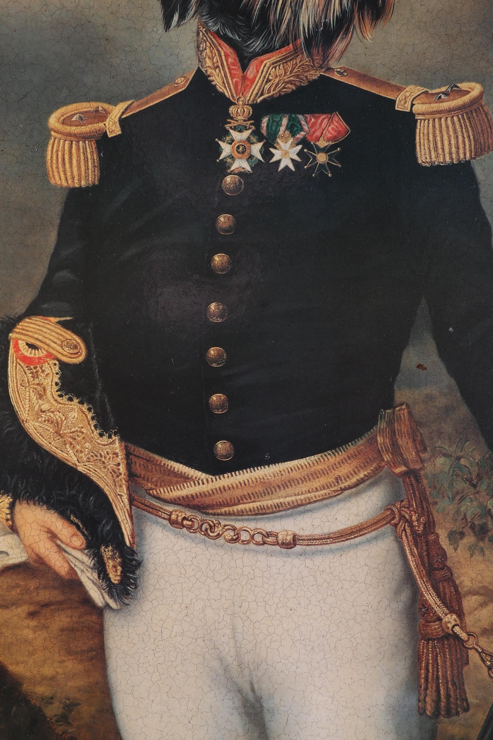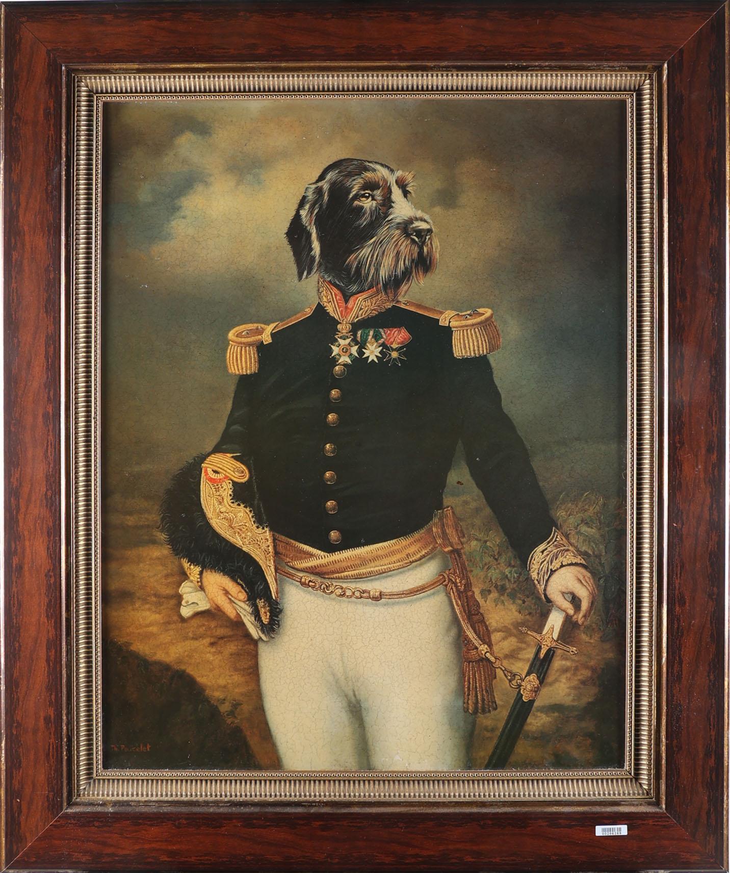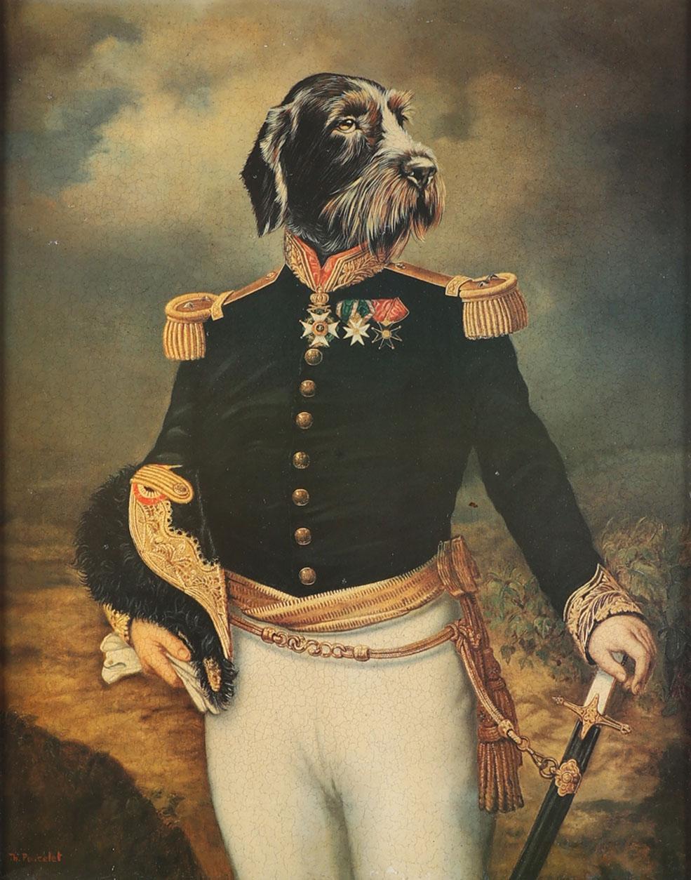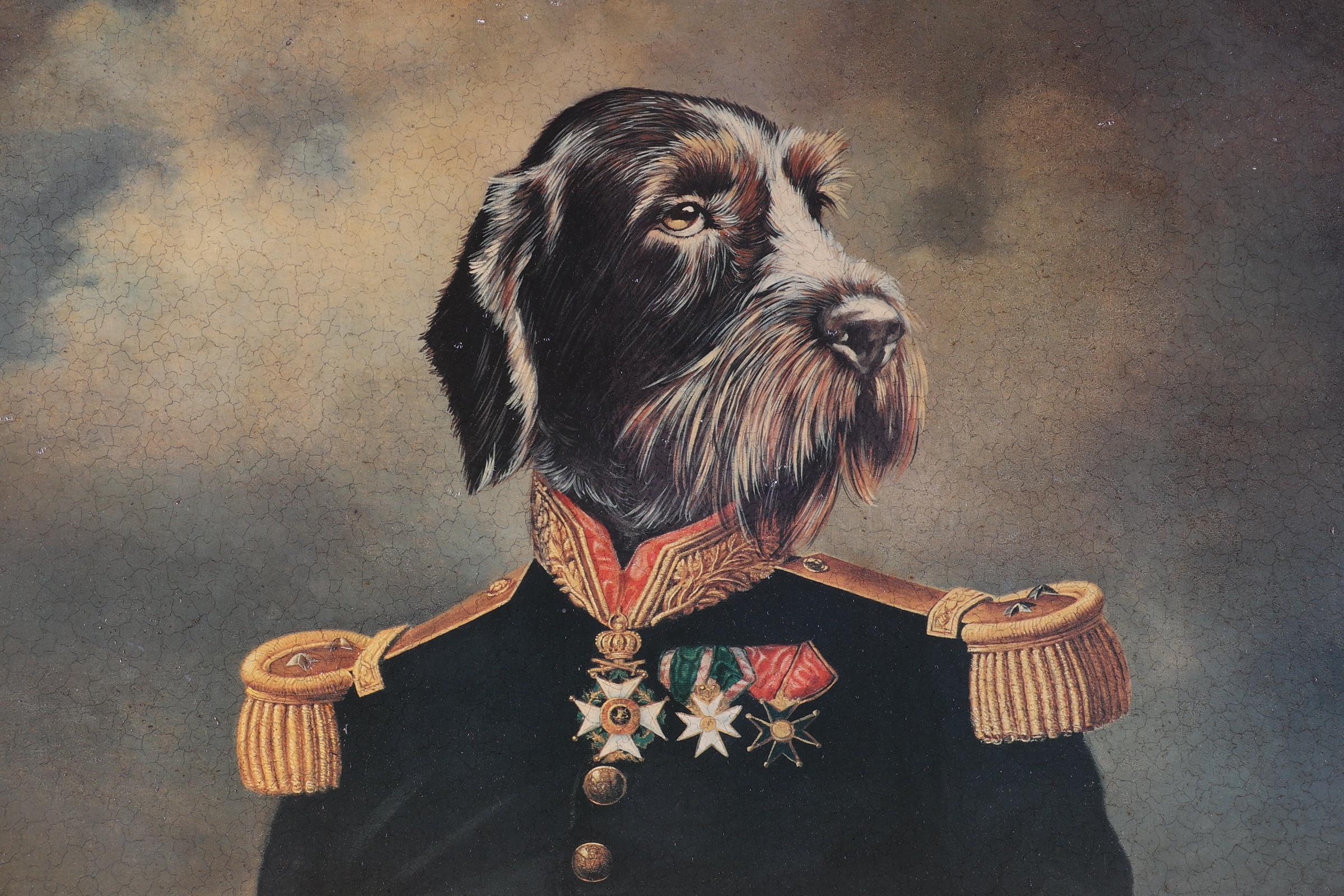 Reproductie naar Thierry Poncelet, Hond in uniform, 70 x 55 cm.