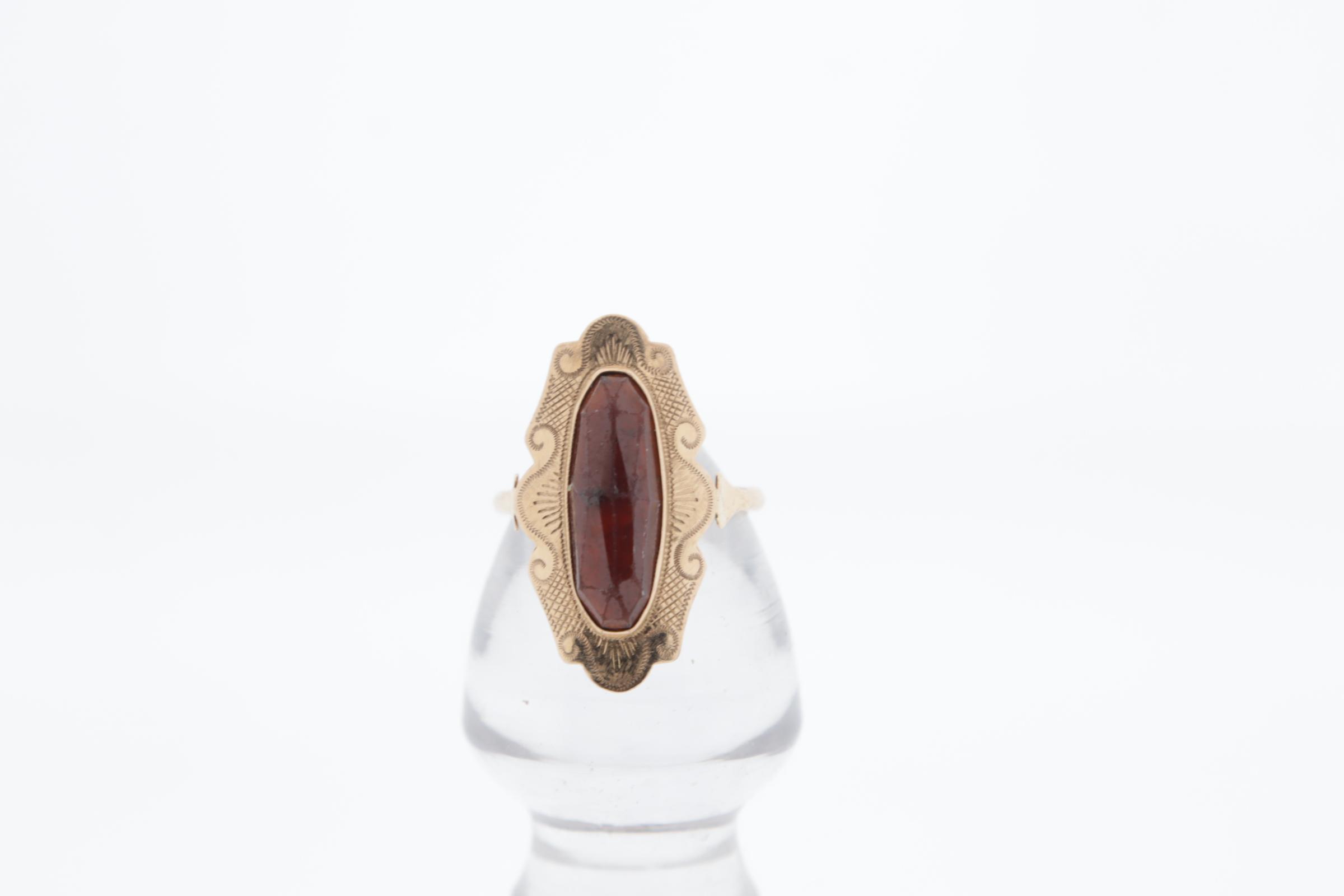 Gouden dames ring bezet met granaat, 4,5 gram, rm 18,5
