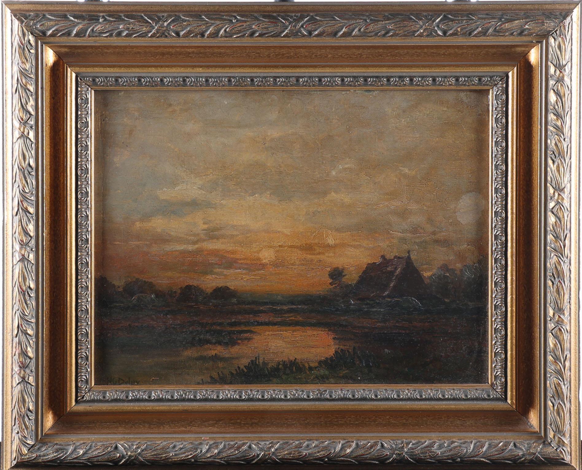 H.G. Deley, Landschap, olieverf op paneel, 27 x 35 cm.