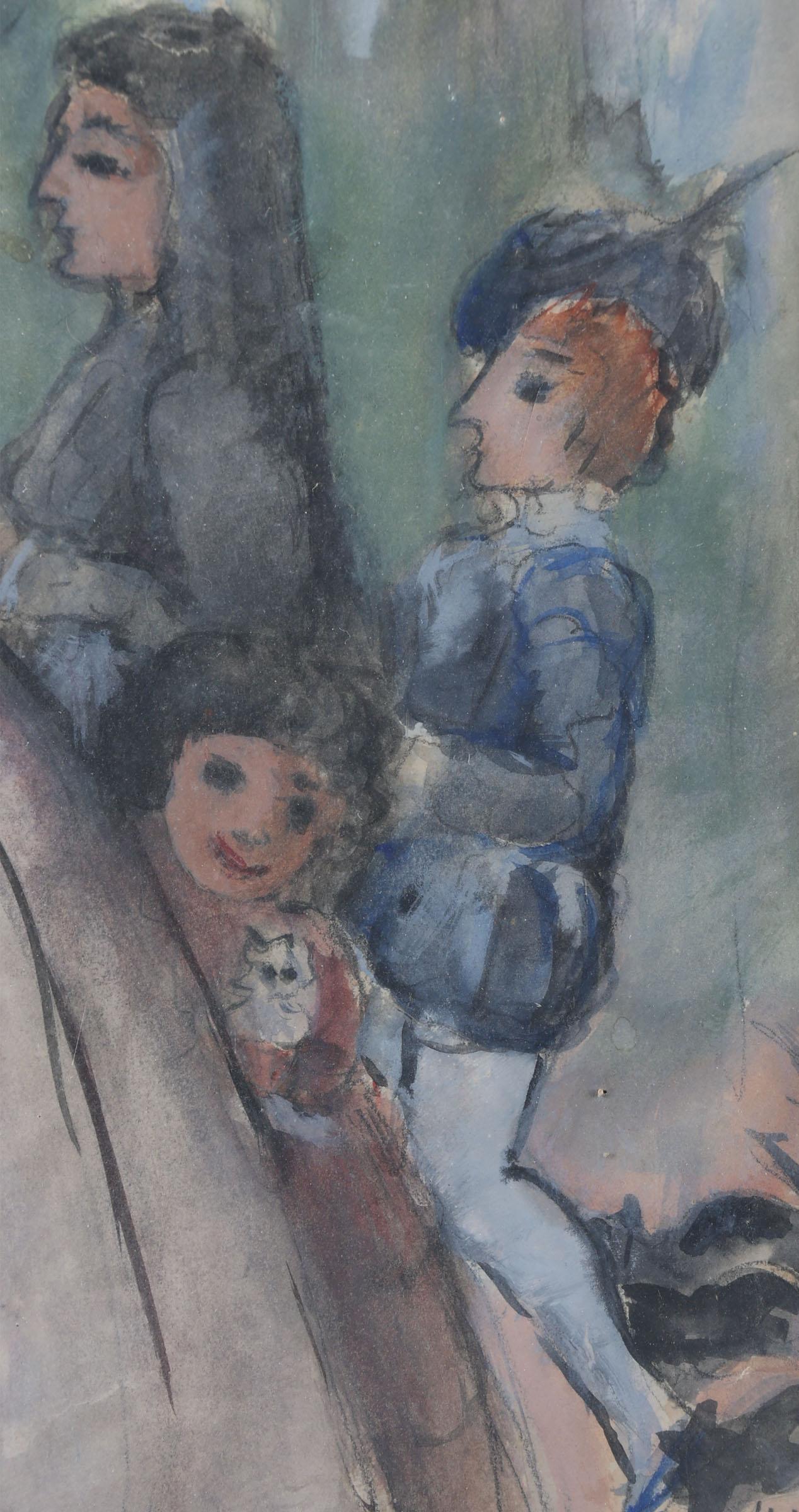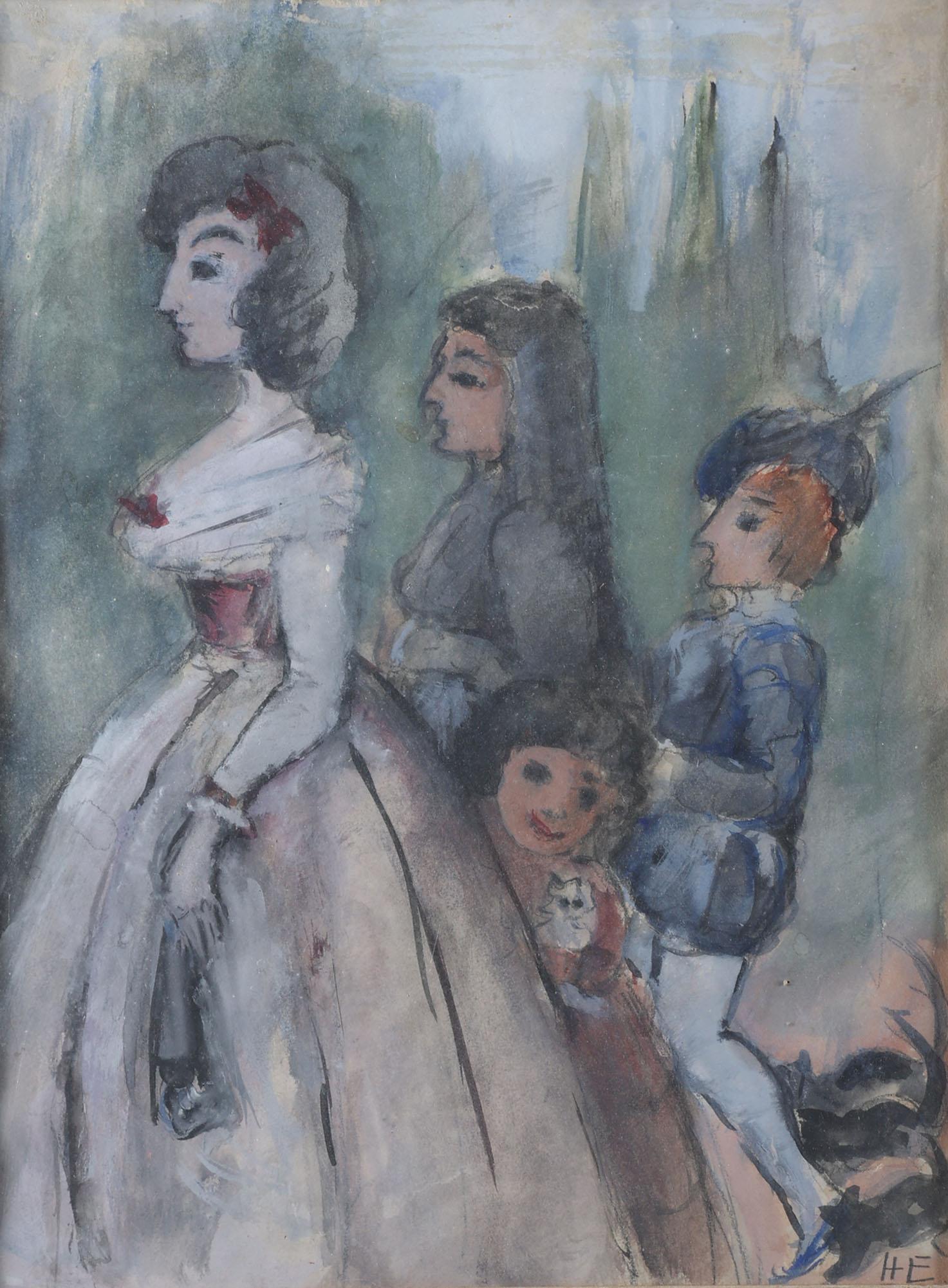 Monogram H.E., Moeder met kinderen, gemengde techniek, 30 x 23 cm.