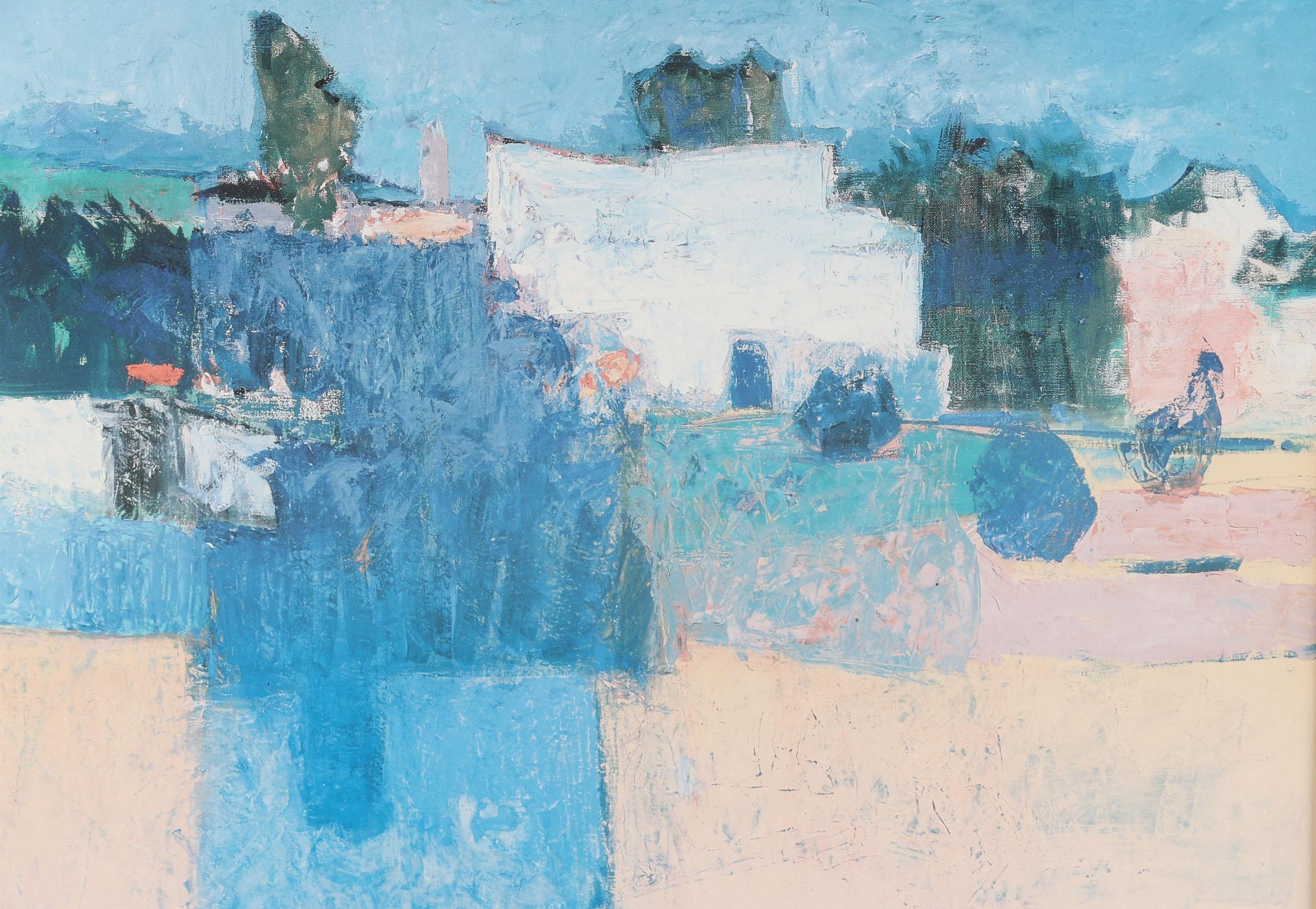 Onb.meester, Huisjes in landschap, lithografie, 39 x 26 cm.