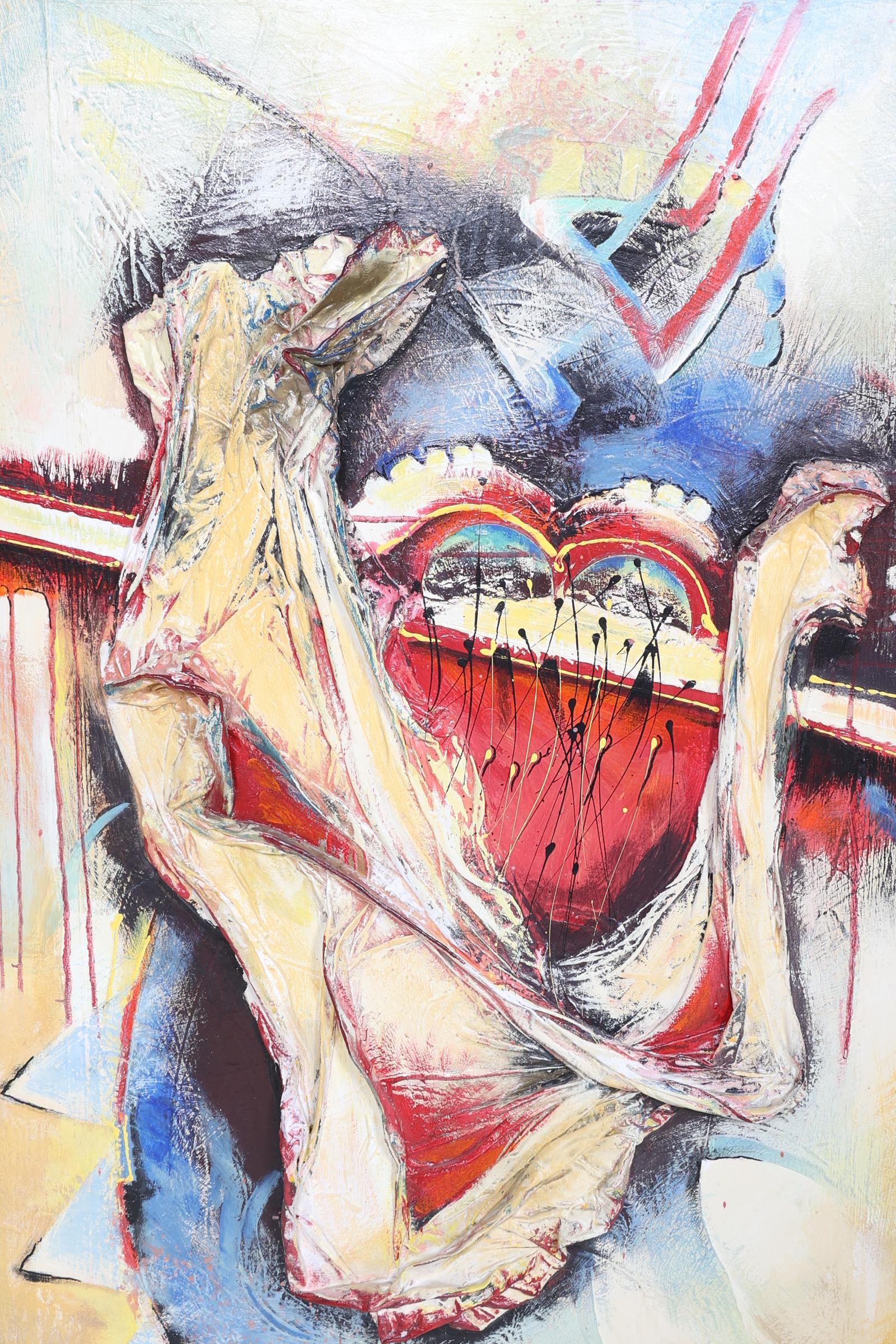 Gerard van den Oetelaar, Abstracte voorstelling, gemengde techniek, gedateerd 2005, 123 x 81 cm.