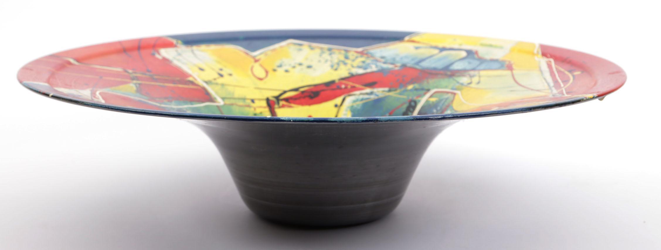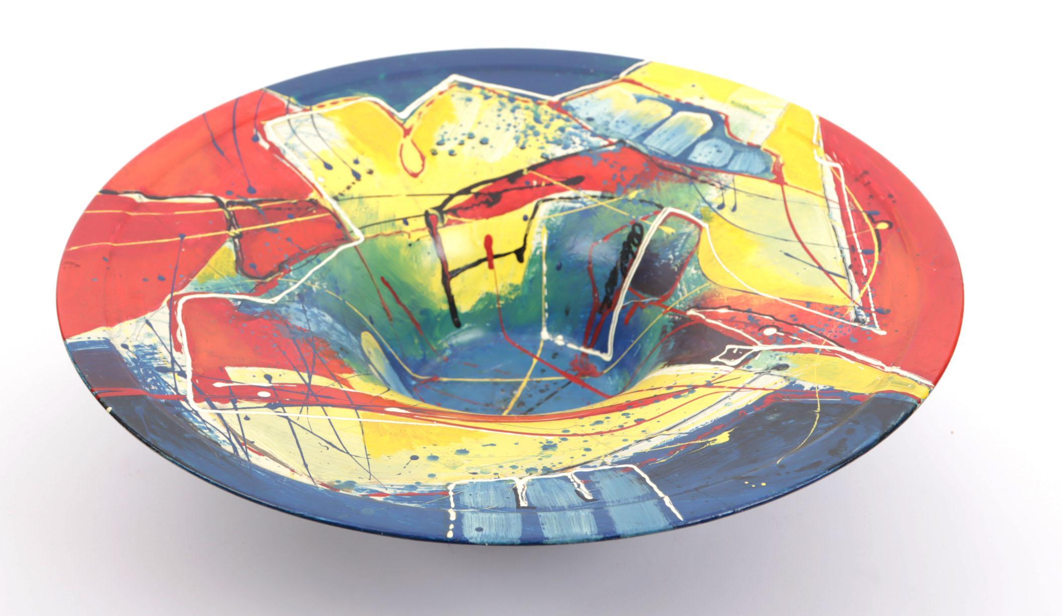 Gerard van den Oetelaar, beschilderde metalen sierschaal, 13 x 48 cm.