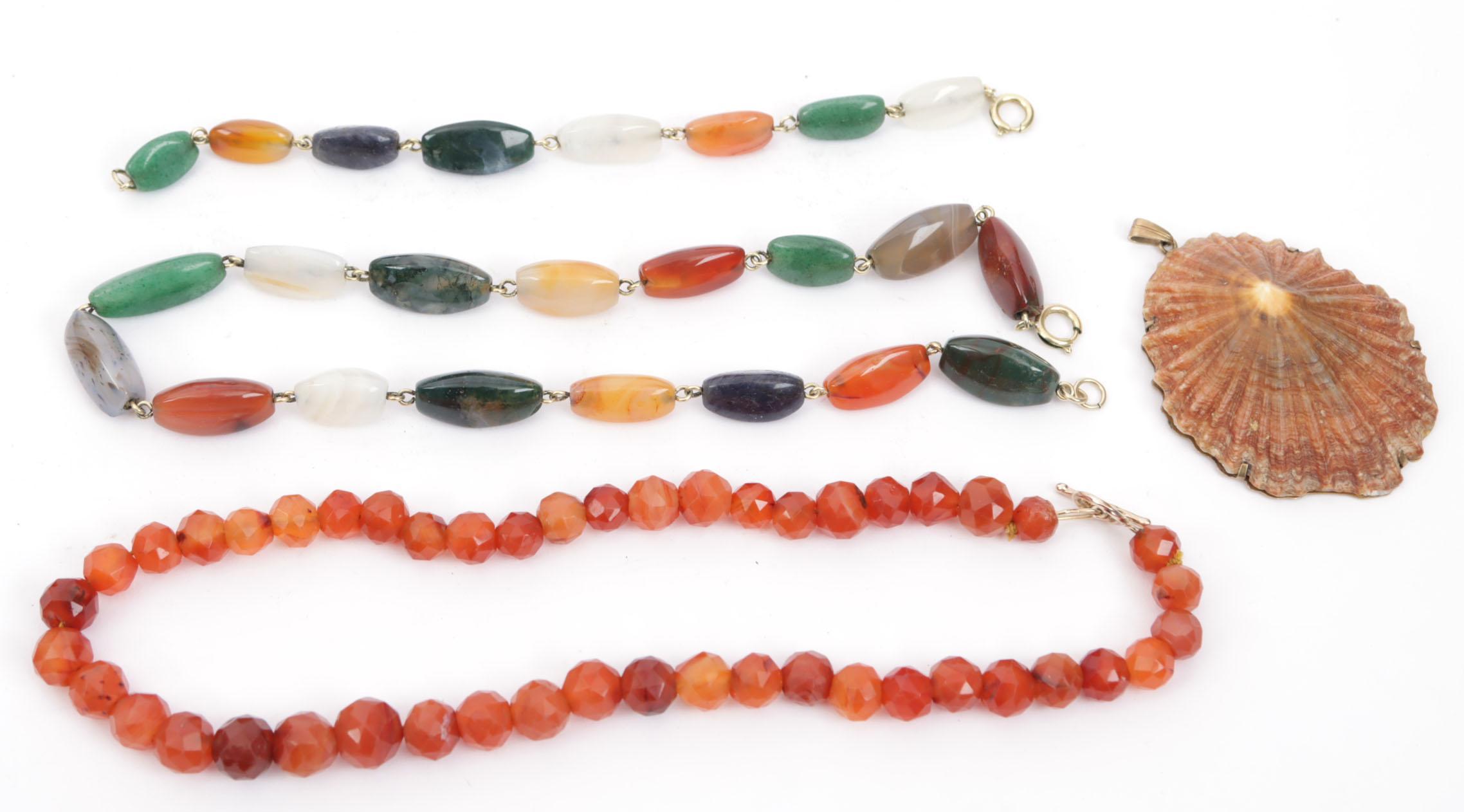 Koopje van een natuurstenen collier met armband, carneool collier en schelp als hanger