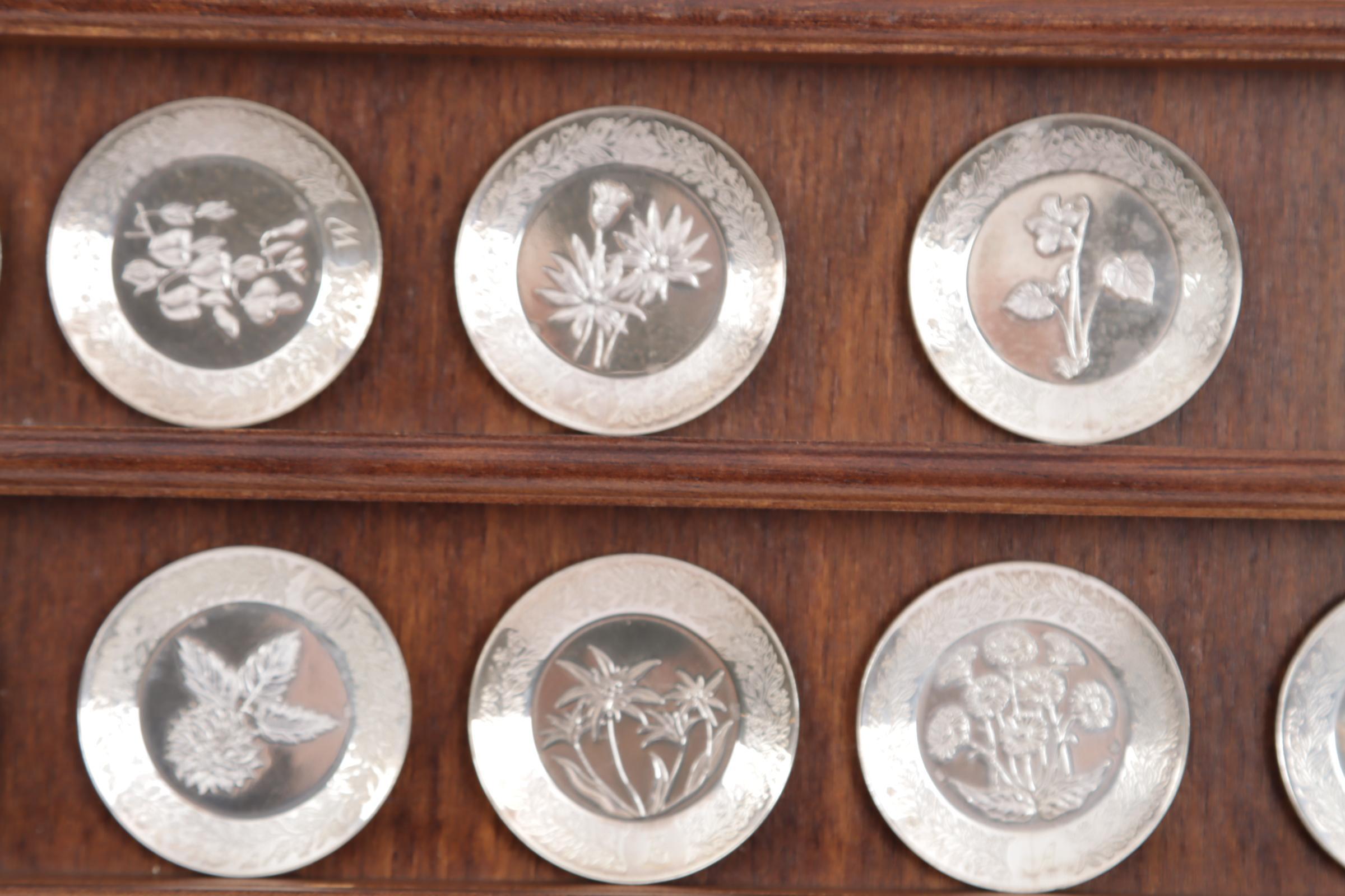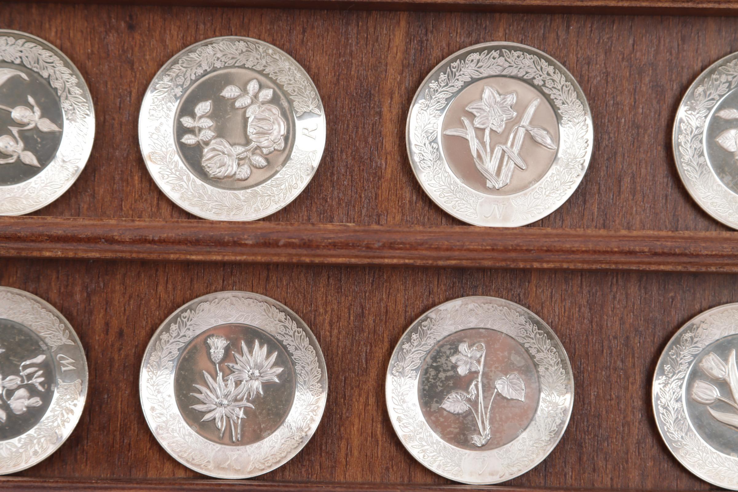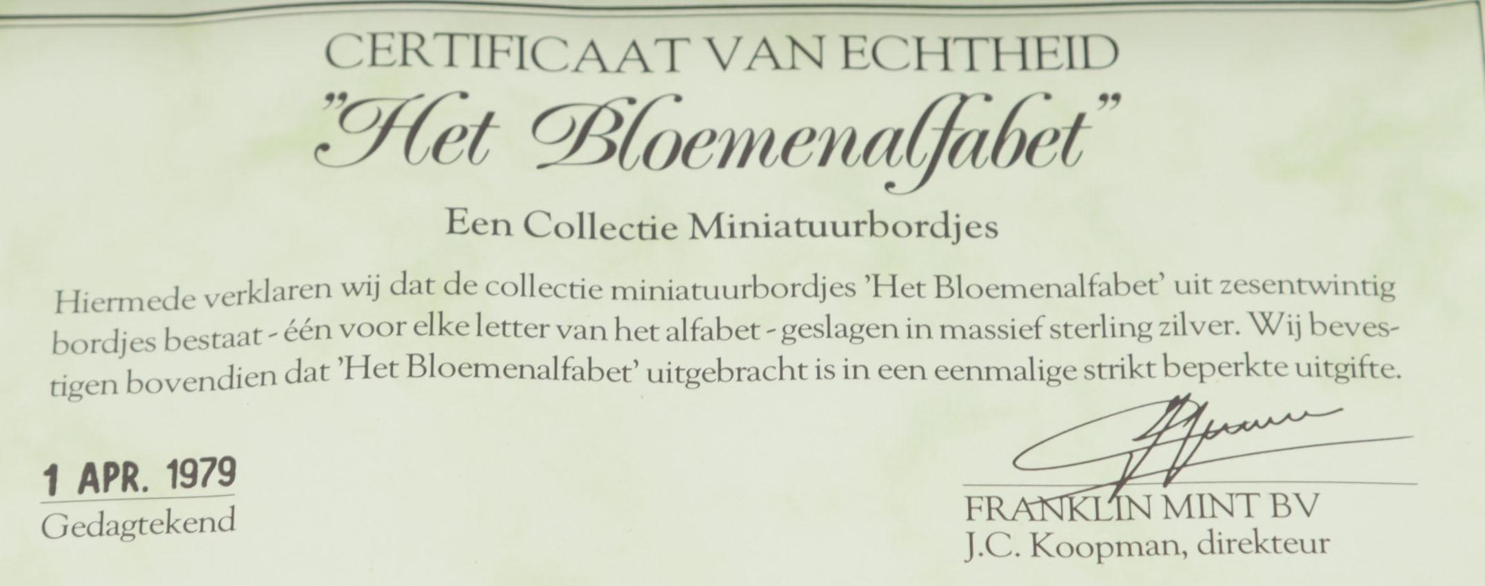 Franklin Mint, een set sterling zilveren miniatuur borden met rekje en certificaat, zilvergewicht: 274 gram