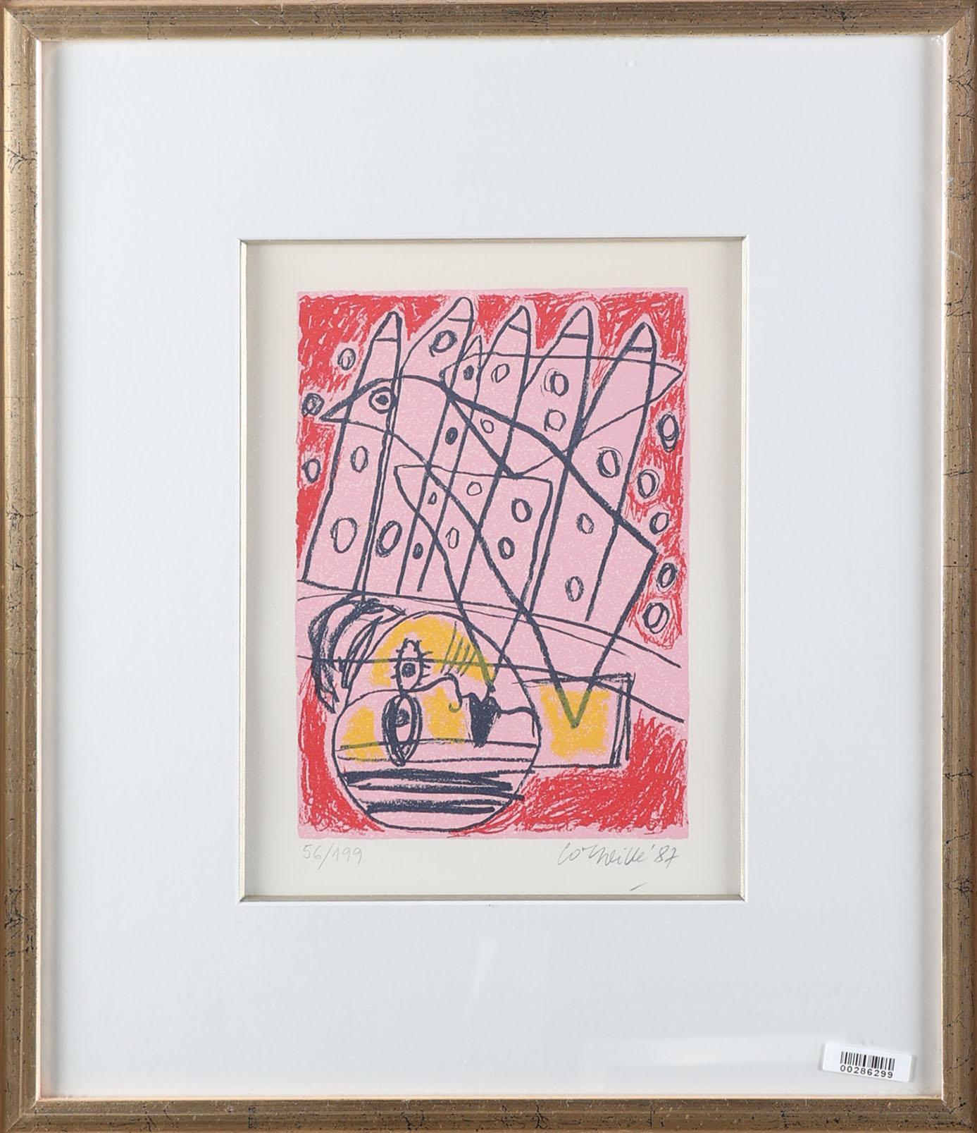 Guillaume Cornelis 'Corneille' van Beverloo (1922-2010), Zonder titel, hand gesigneerde lithografie, genummerd 56/199, gedateerd 1987, 25 x 19 cm.