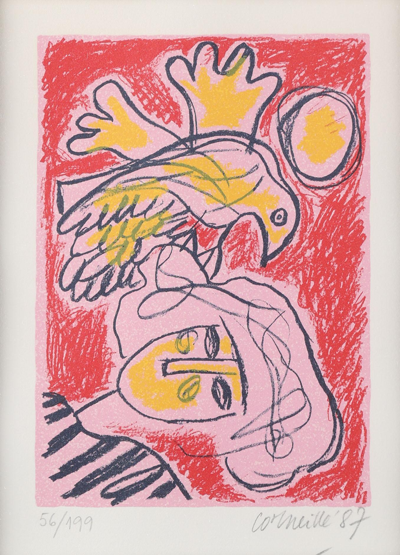 Guillaume Cornelis 'Corneille' van Beverloo (1922-2010), Zonder titel, hand gesigneerde lithografie, genummerd 56/199, gedateerd 1987, 25 x 19 cm.