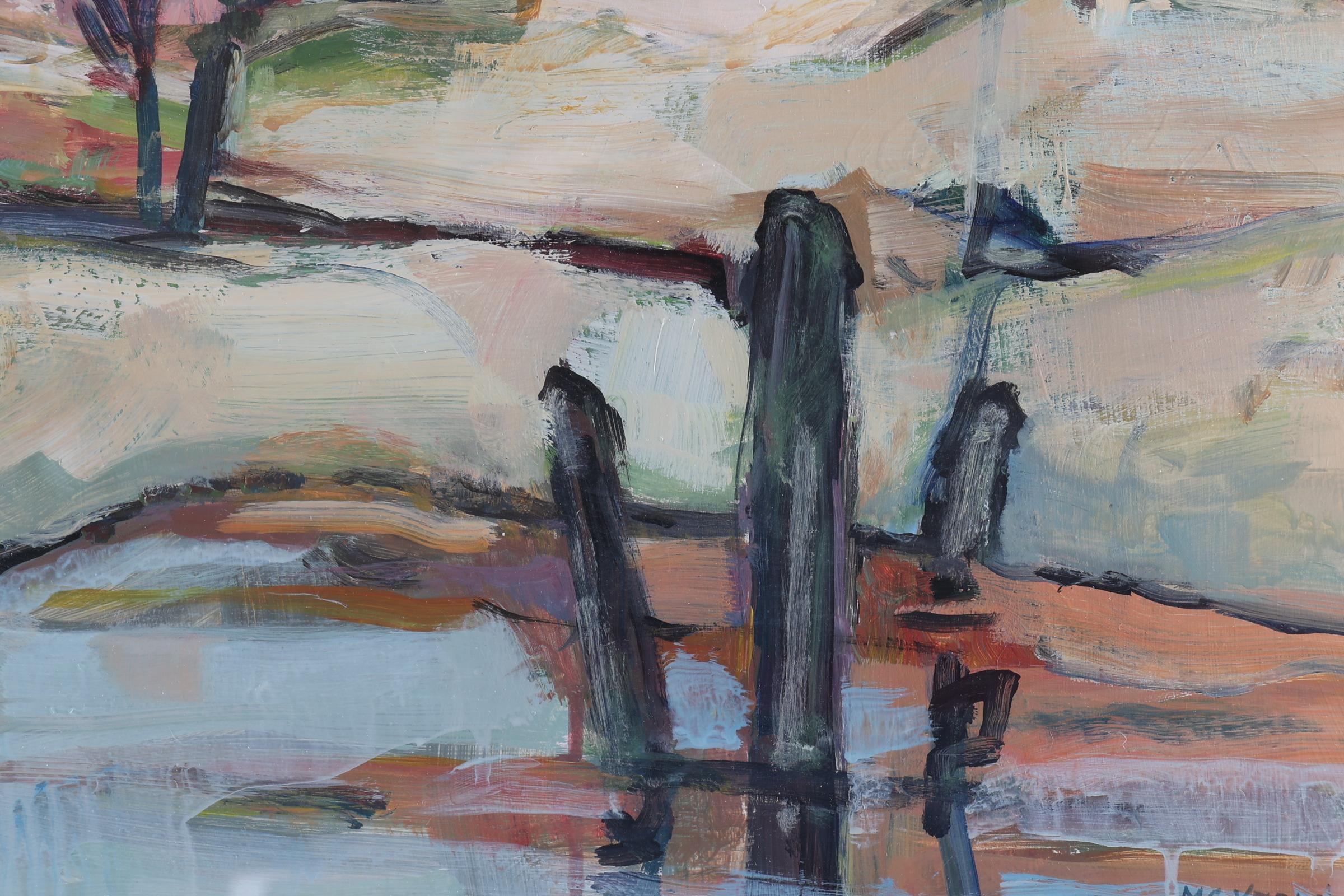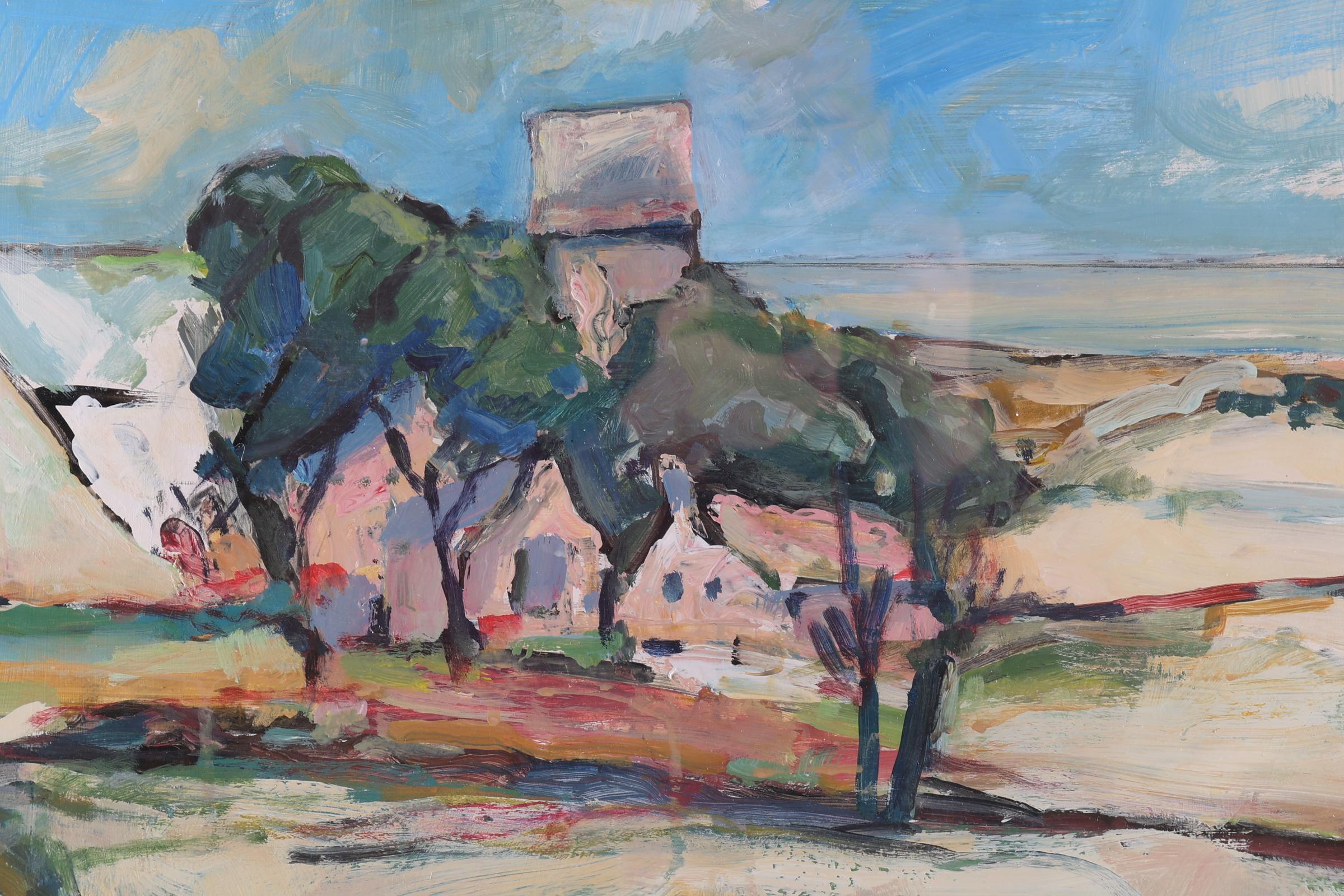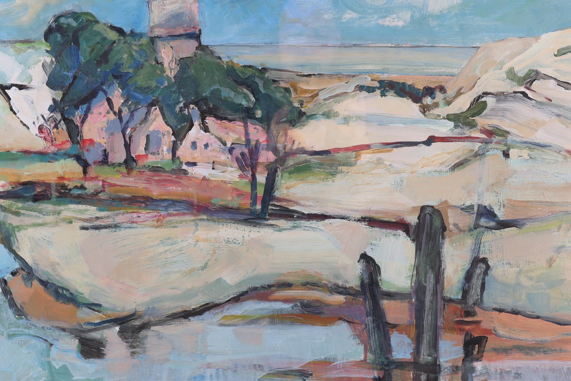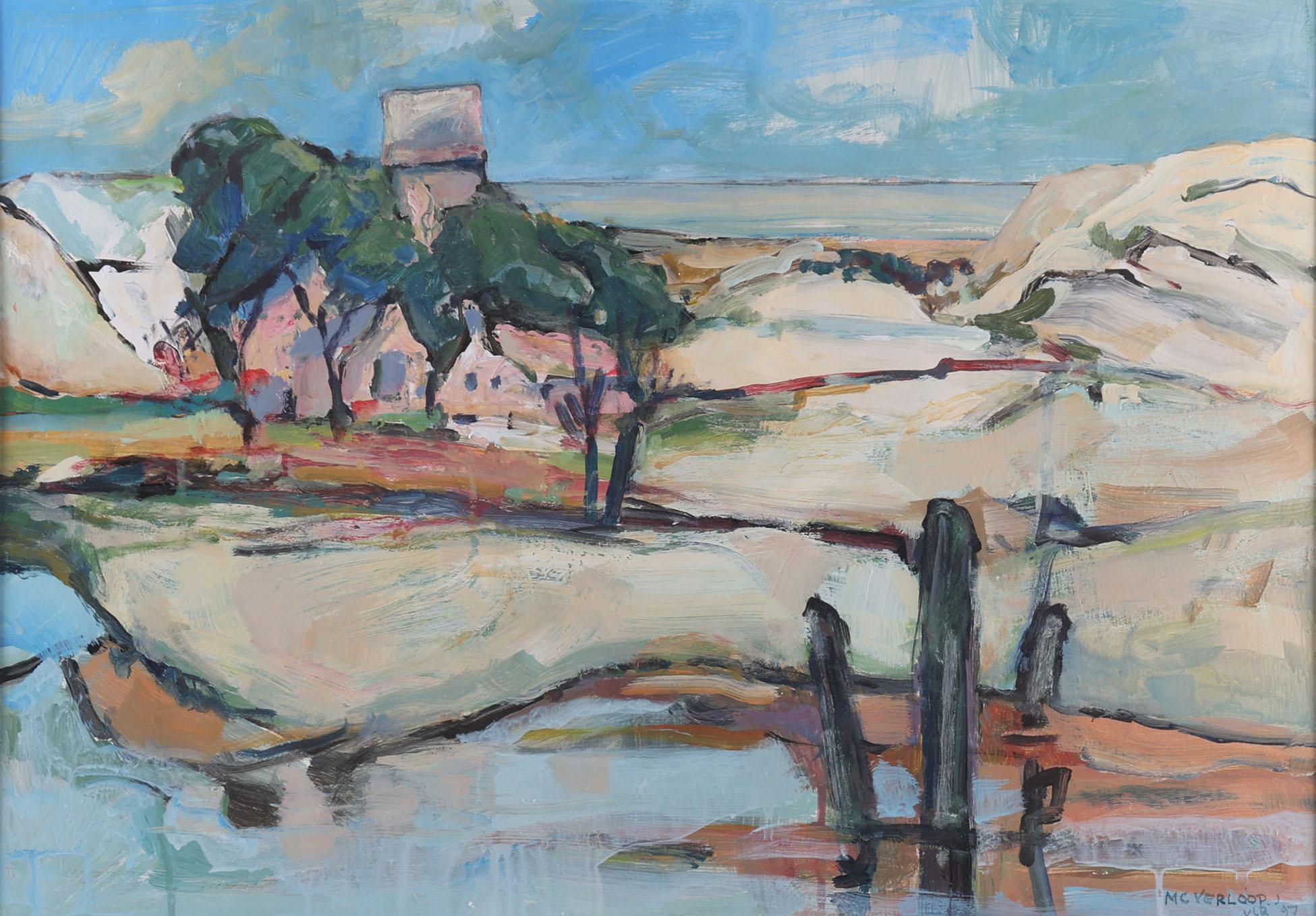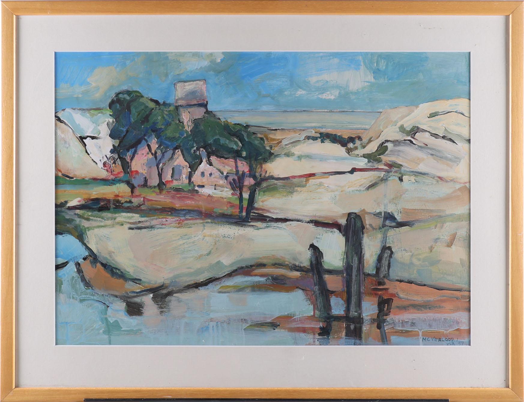 Maria Catherina Verloop van Leeuwenboomkamp (1920), Landschap met doorkijk op de oceaan, gedateerd 1997, gouache, 67 x 47 cm.