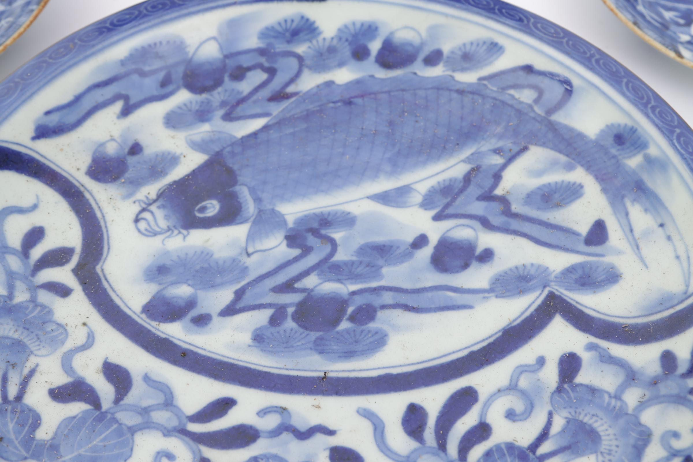 4 Blauw/wit gedecoreerde Japanse borden, diam.22,25,5 en 32,5 cm.