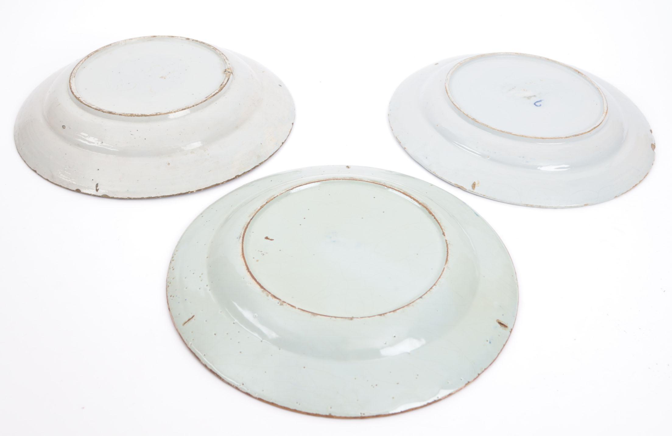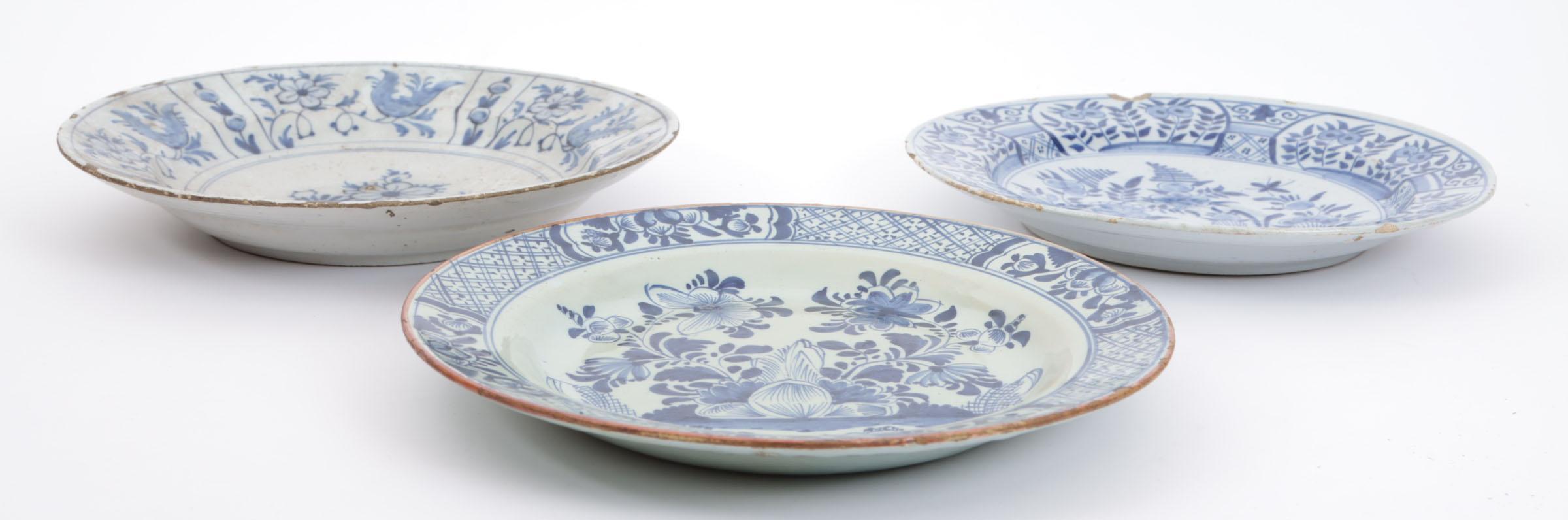 3 Diverse Delfts aardewerken borden, diam.30 cm.
