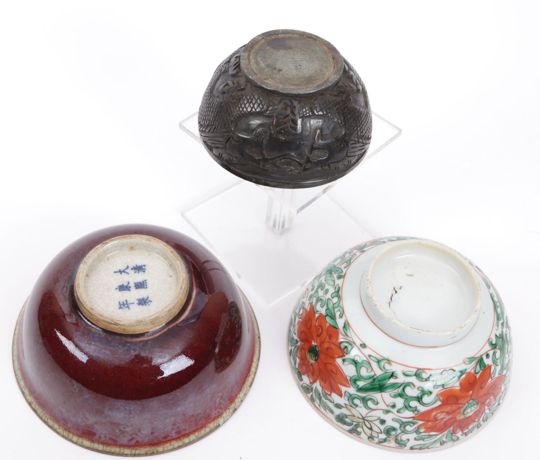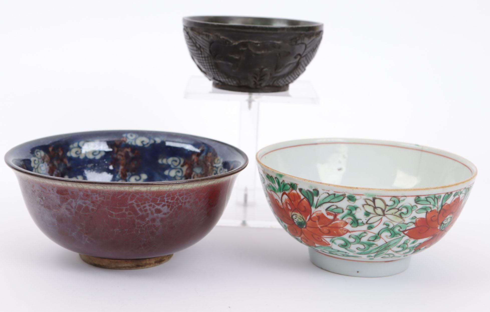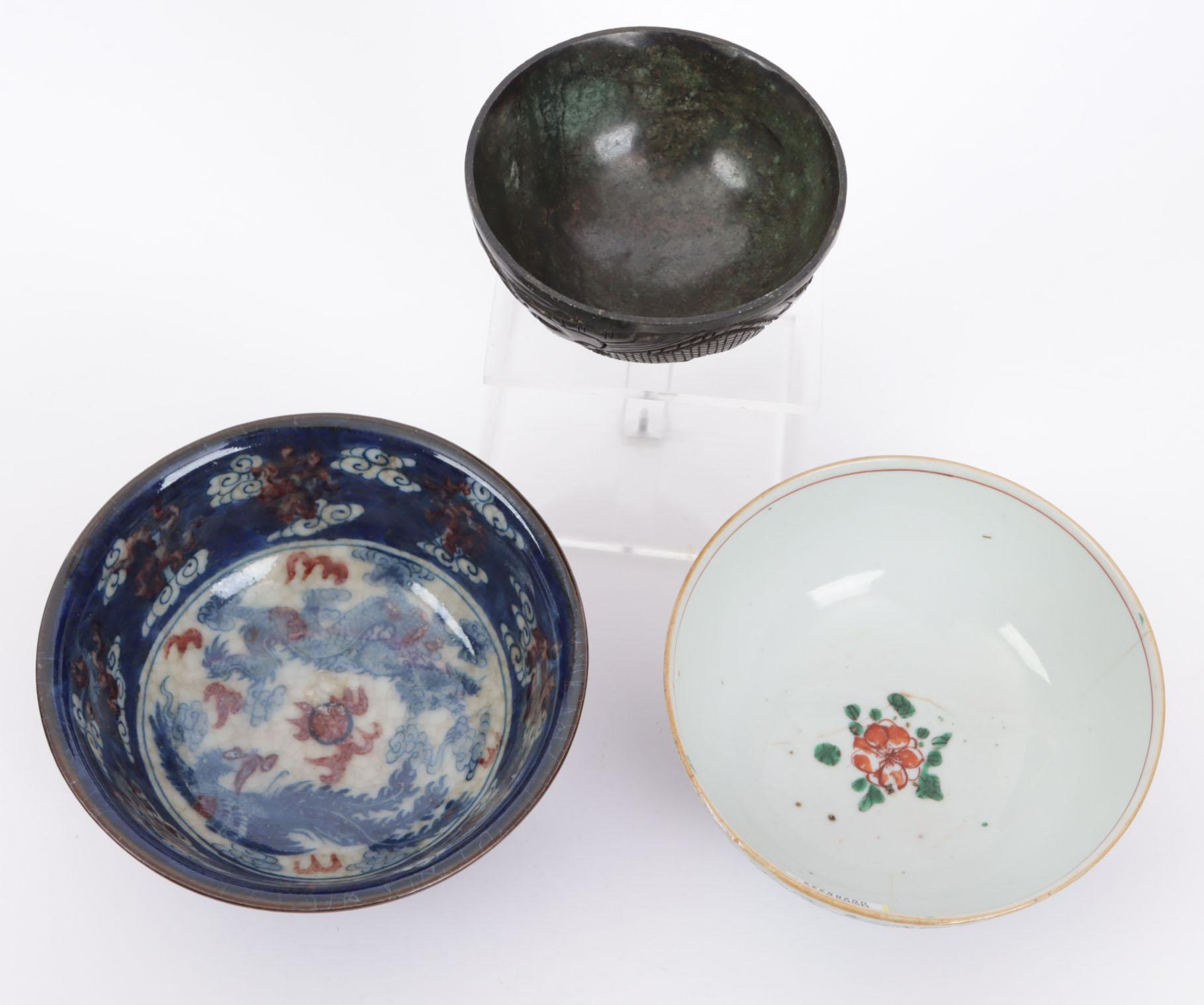 Koop van 3 diverse Chinese kommen, diam.11,15 en 16 cm. (haarlijn)