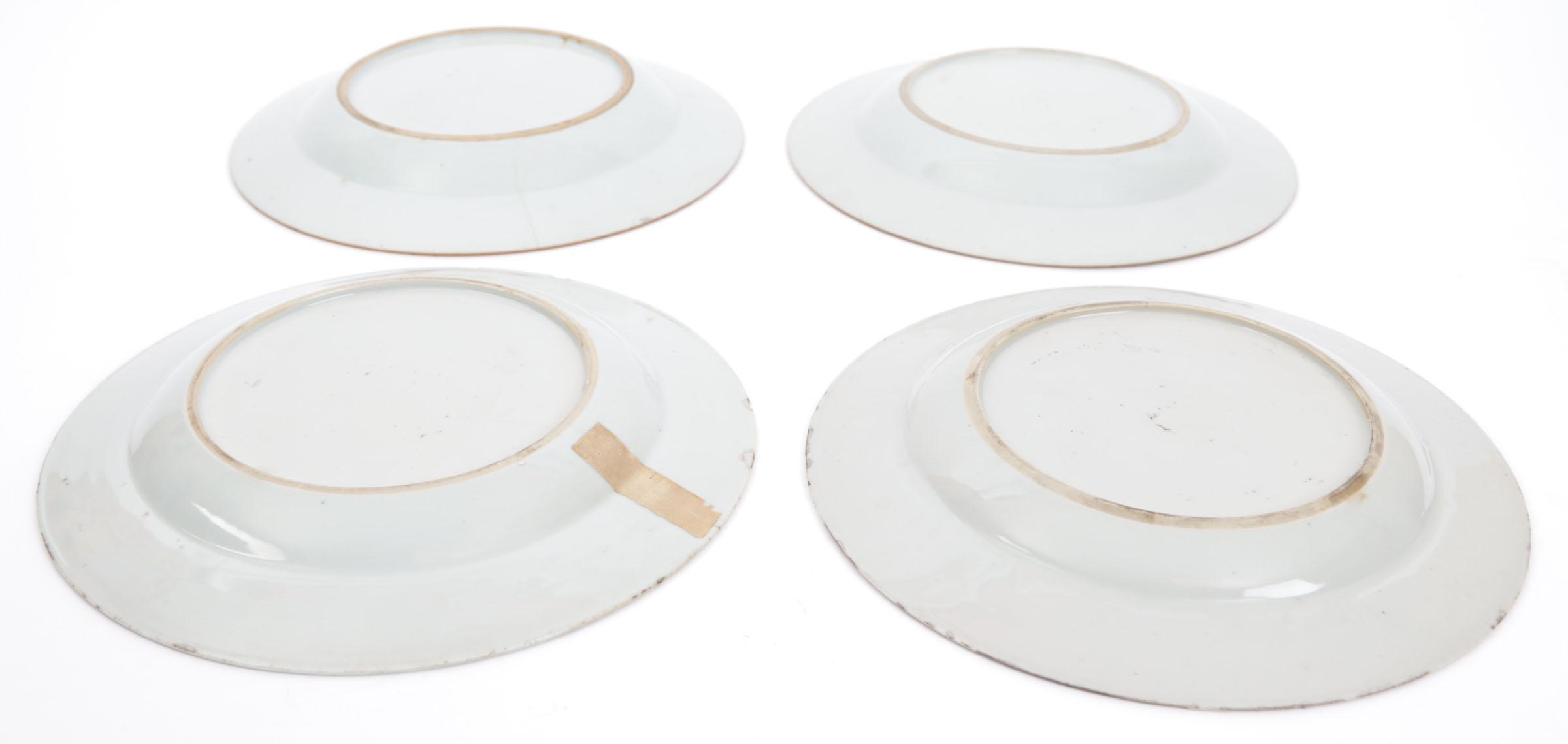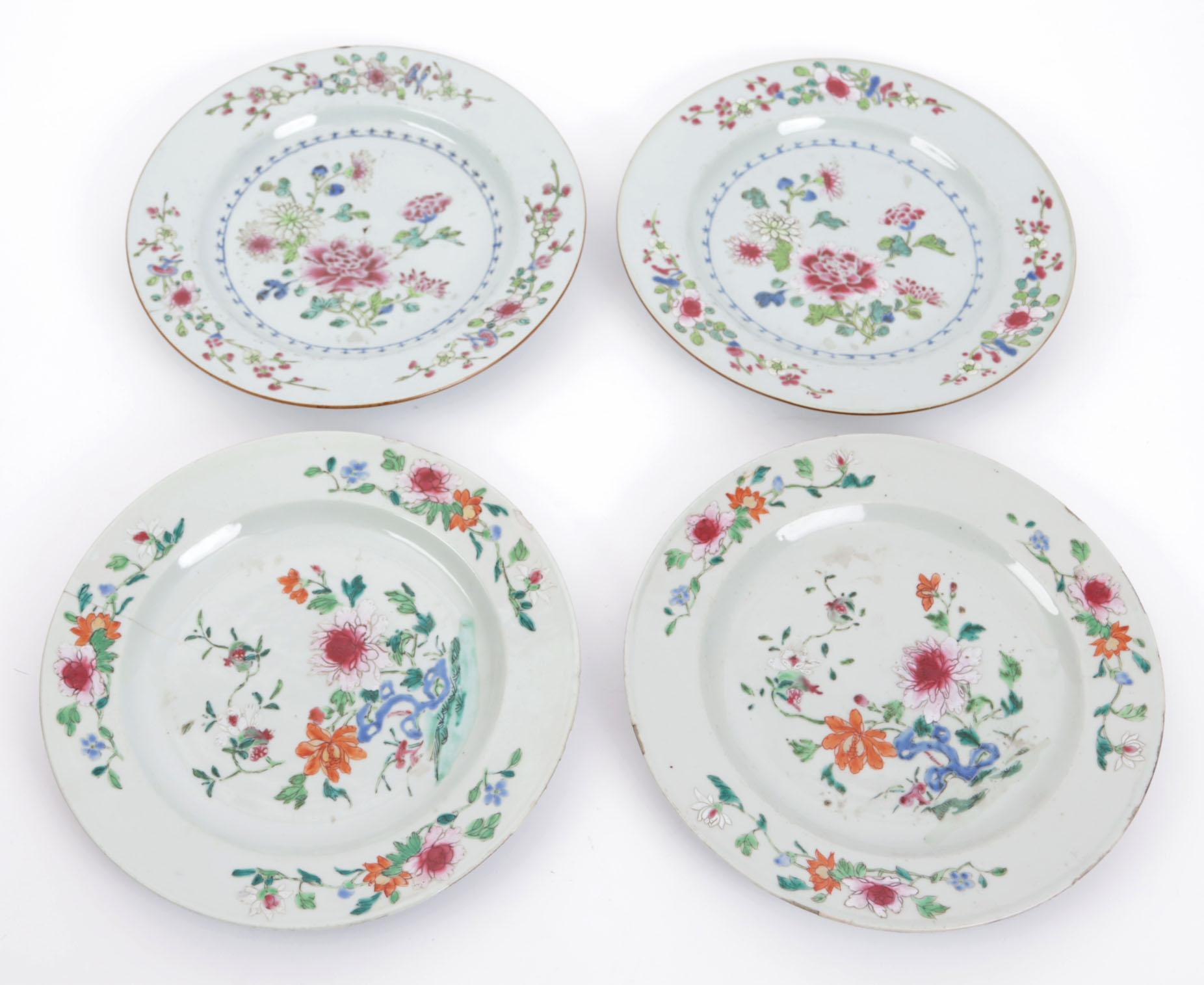 2 Paar porseleinen famille rose borden (randschilfers, haarscheurtjes), diam.23 cm.