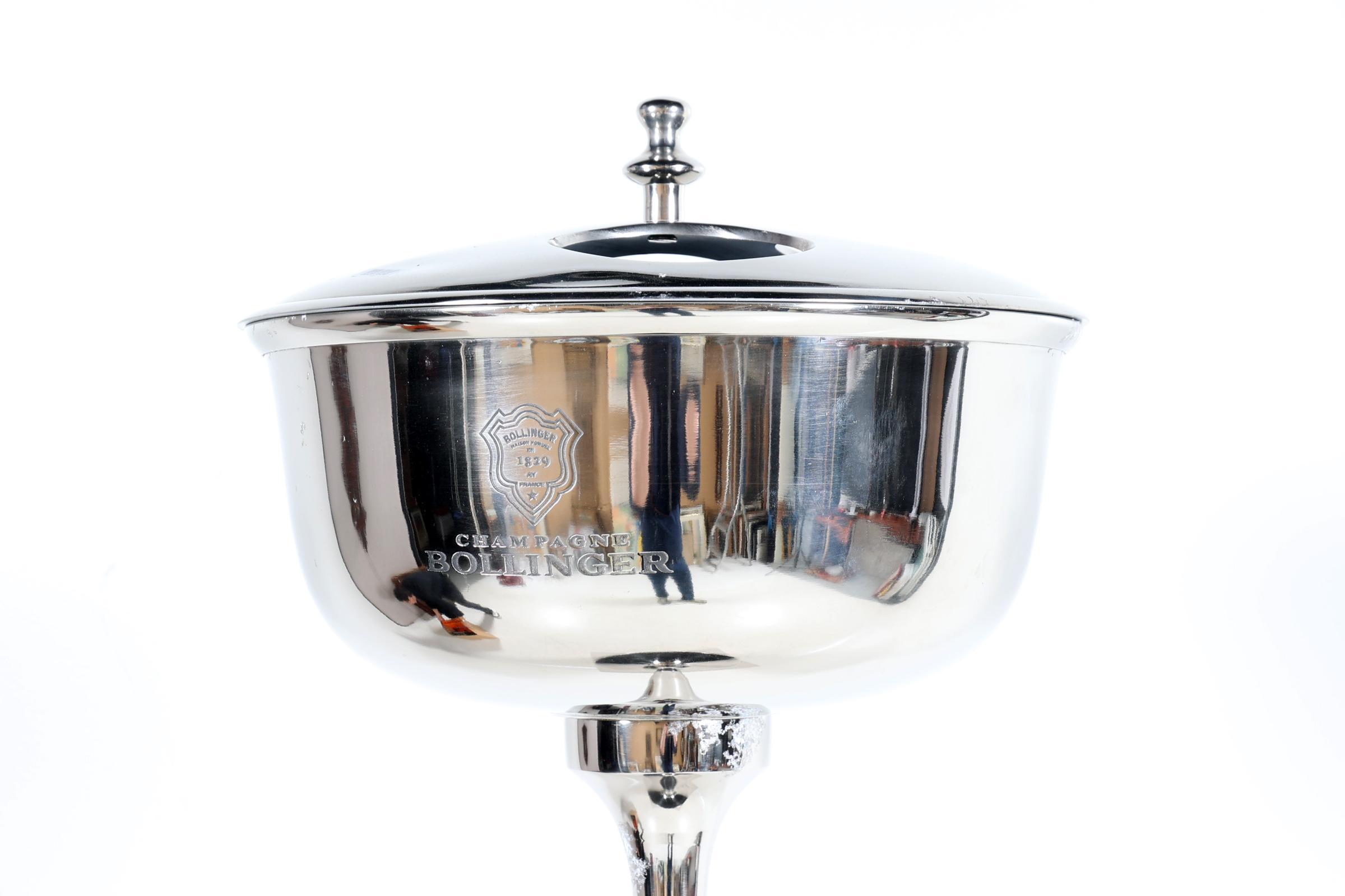 Champagnecooler op statief, Bollinger, h.85 cm.
