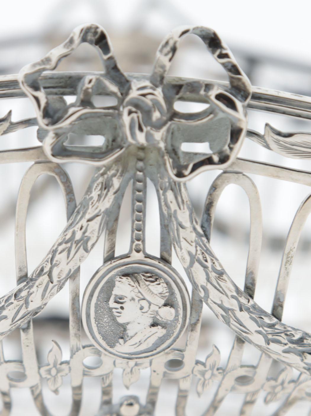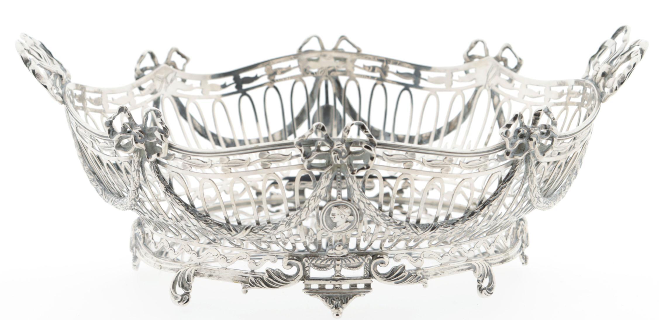 Hendrik Poelman (Arnoldes van der Beek) 's Gravenhage 1923-1925, Louis Quinze stijl 2e gehalte zilveren broodmand, h.11,5 x b.28.5 x d.20.5 cm. 684 gram.