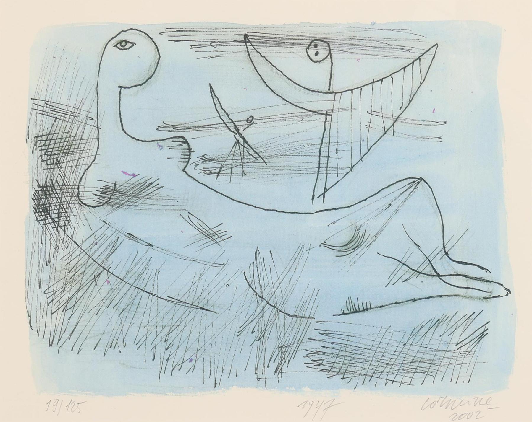 'Corneille', alias van Cornelis Guillaume van Beverloo, (1922- 2010), Vrouw met vogelachtige (2002), handgesigneerde en gedateerde giclée, genummerd 19/125, 45,5 x 36 cm. Provenance: collectie Kunsthandel Elisabeth den Bieman de Haas, Amsterdam