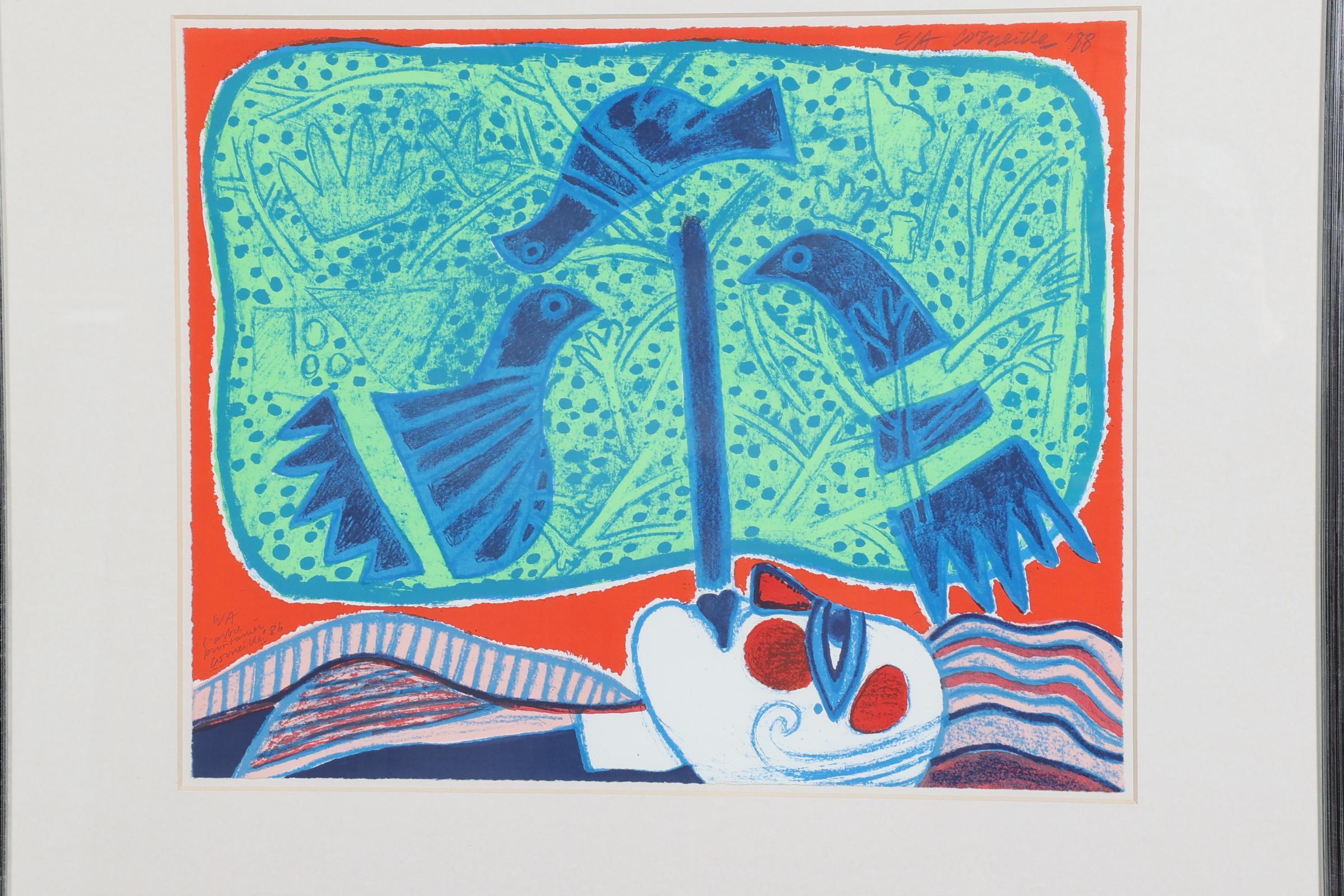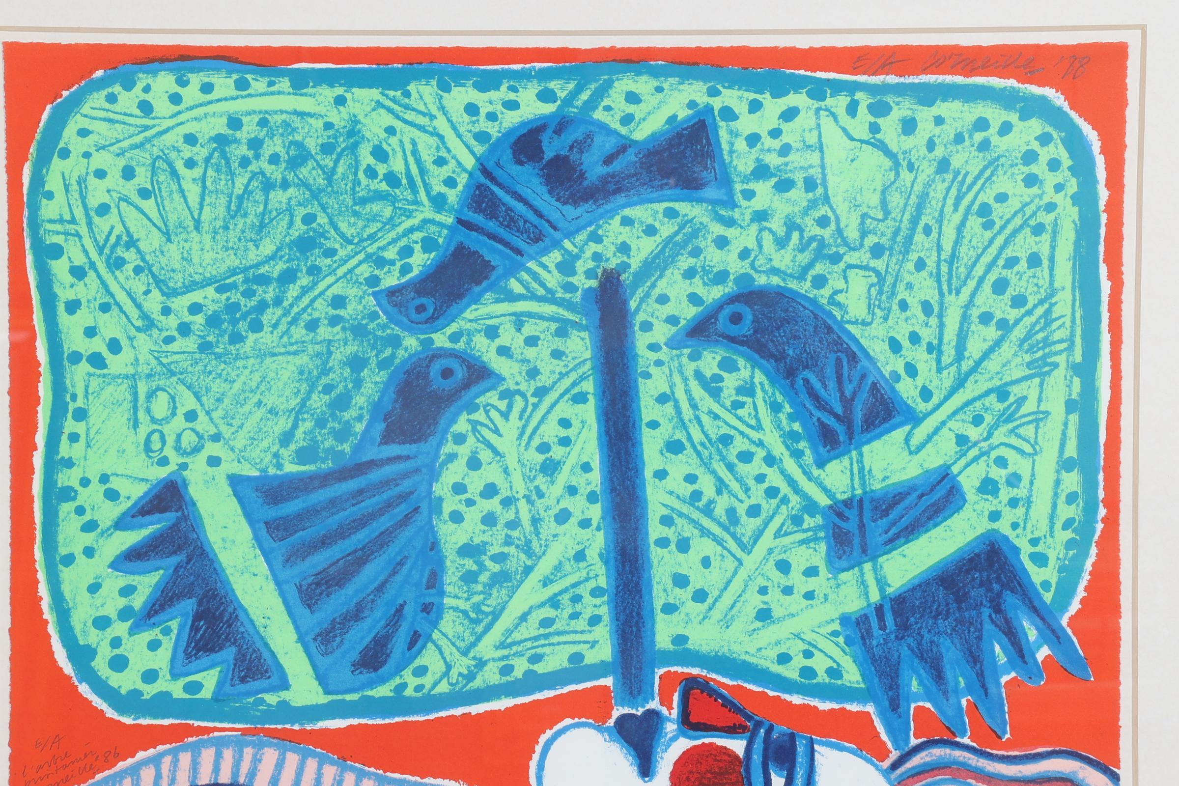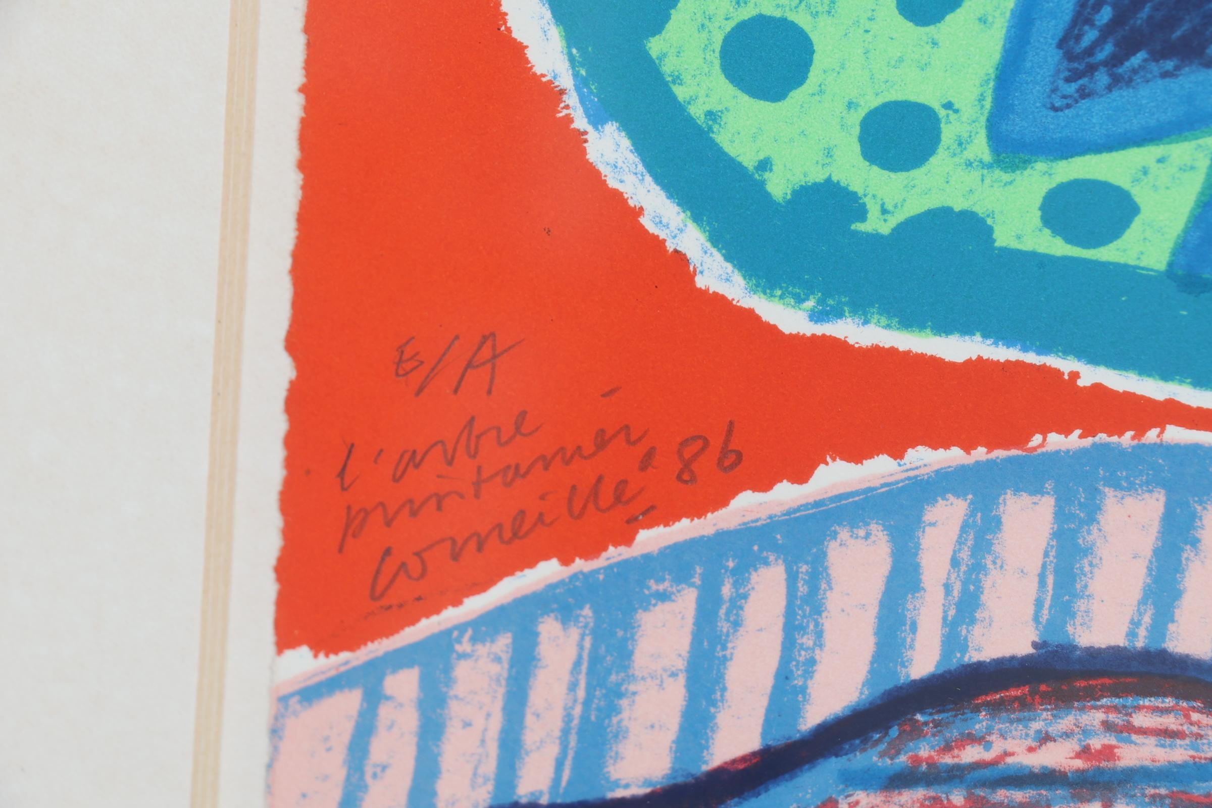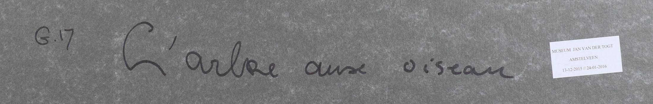 'Corneille', alias van Cornelis Guillaume van Beverloo (1922- 2010), L'arbre aux oiseaux, handgesigneerde en gedateerde zeefdruk, Epreuve d'artiste, 1986-'88, twee exemplaren in de collectie, 41 x 51 of 75 x 85 cm. Provenance: collectie Kunsthandel Elisabeth den Bieman de Haas, Amsterdam. Tentoonstelling: Museum Jan van der Togt, Amstelveen 2015/2016
