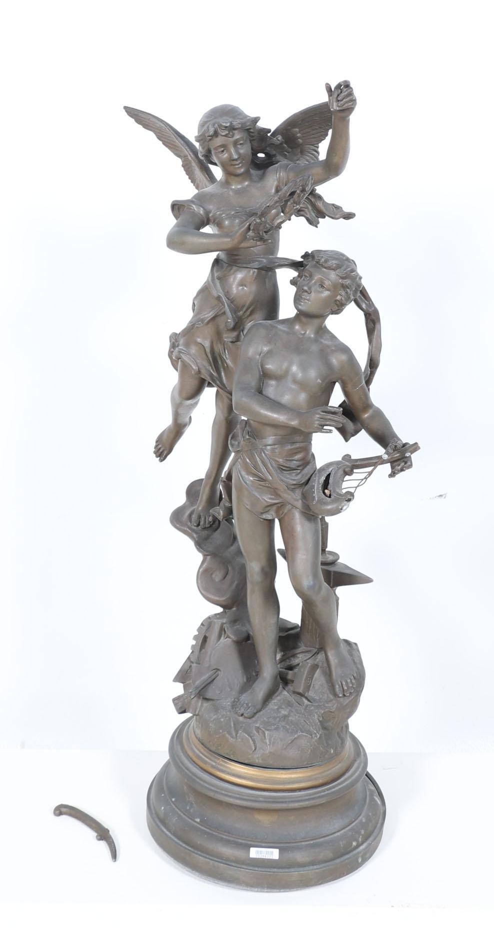 Legering sculptuur van een man en vrouw, h.90 cm. (defecten)