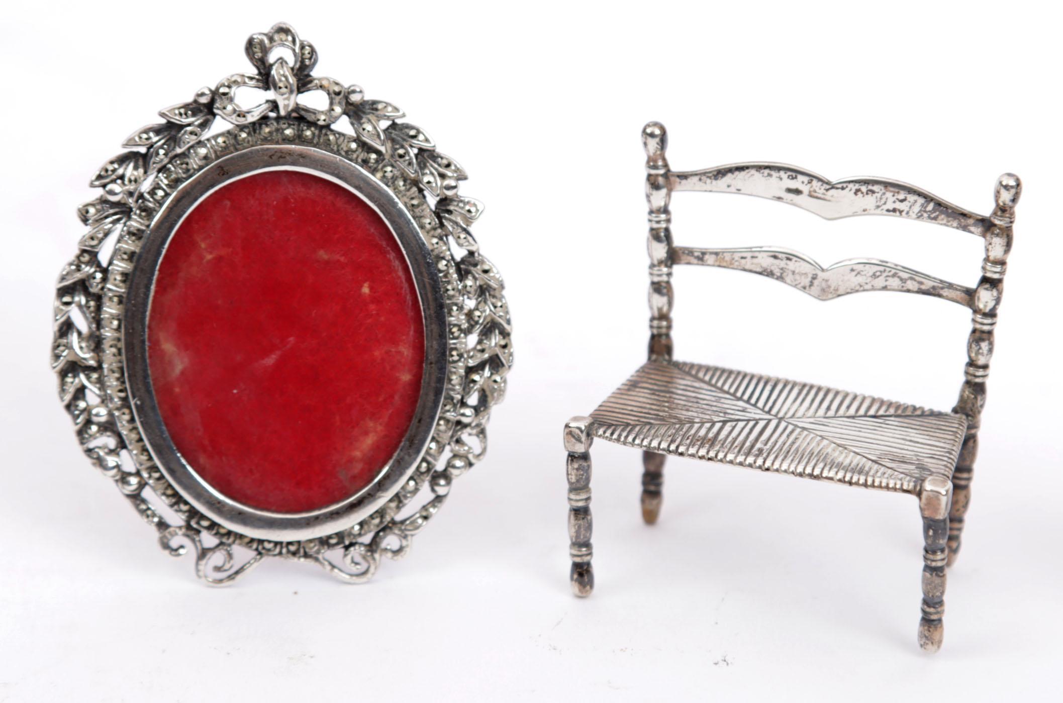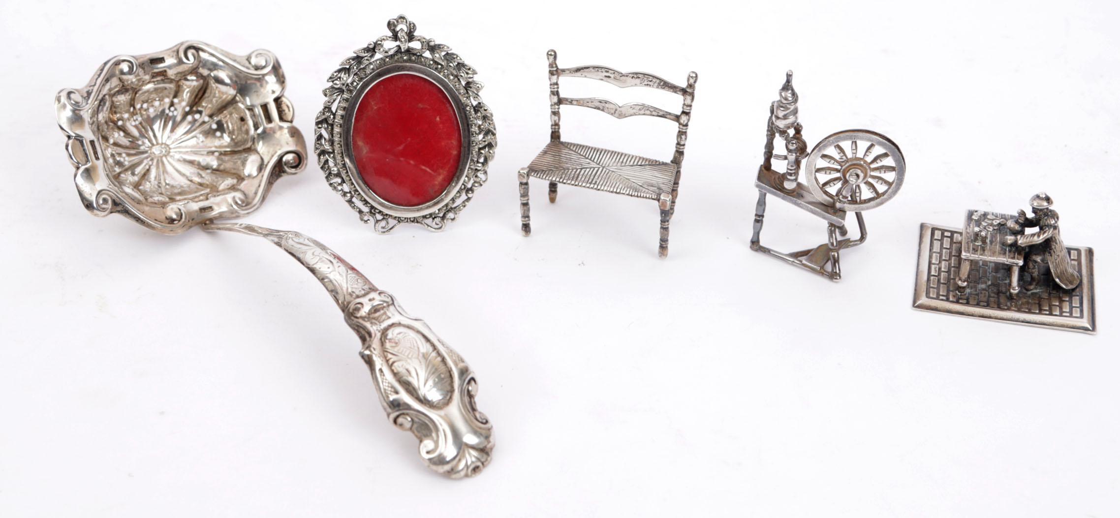 Koopje diverse zilveren miniaturen, fotolijstje en een strooilepel