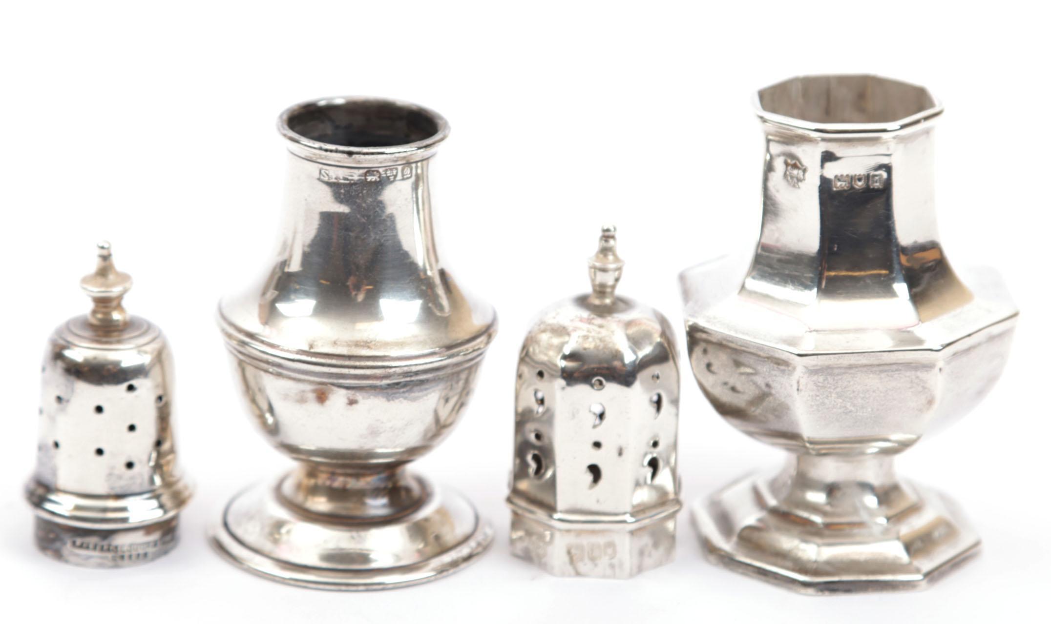 2 Diverse Engels zilveren strooibussen, 55 gram