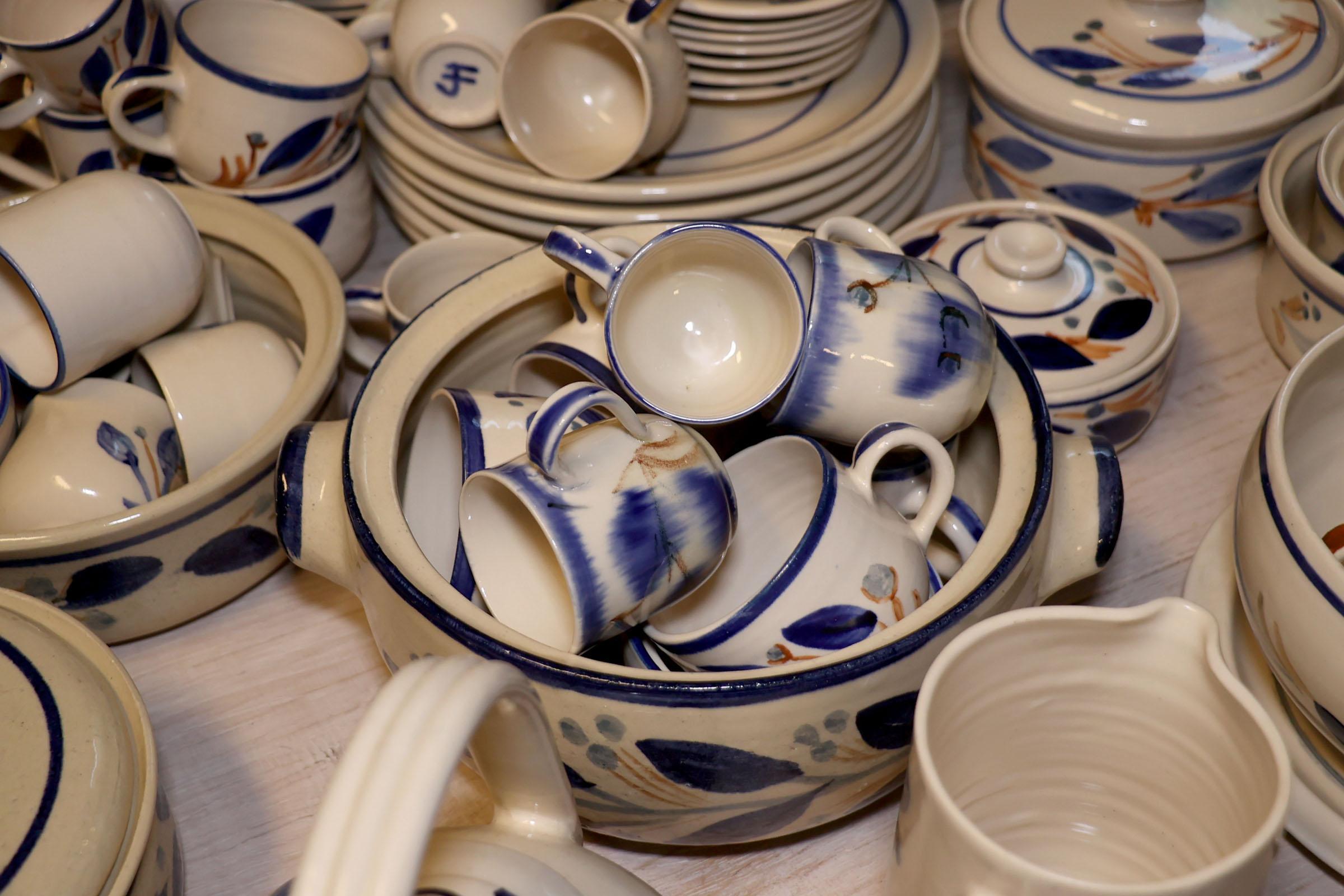 Carry Heesen, beschilderd aardewerken servies met florale motieven